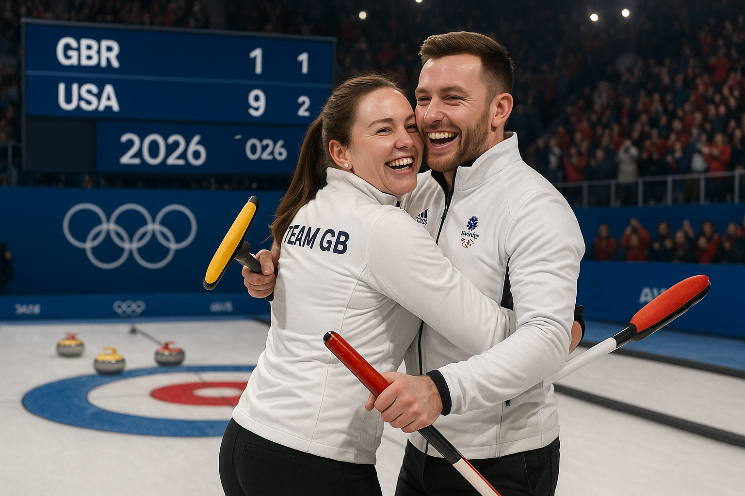 Great Britain's Jennifer Dodds and Bruce Mouat defeated Italy 9-6 to claim the top position in the mixed doubles curling round-robin at the 2026 Winter Olympics. The United States edged Sweden 8-7 to take second place, while Italy and Sweden also advanced to the semifinals despite late losses. Canada was eliminated after a 9-5 defeat to South Korea.