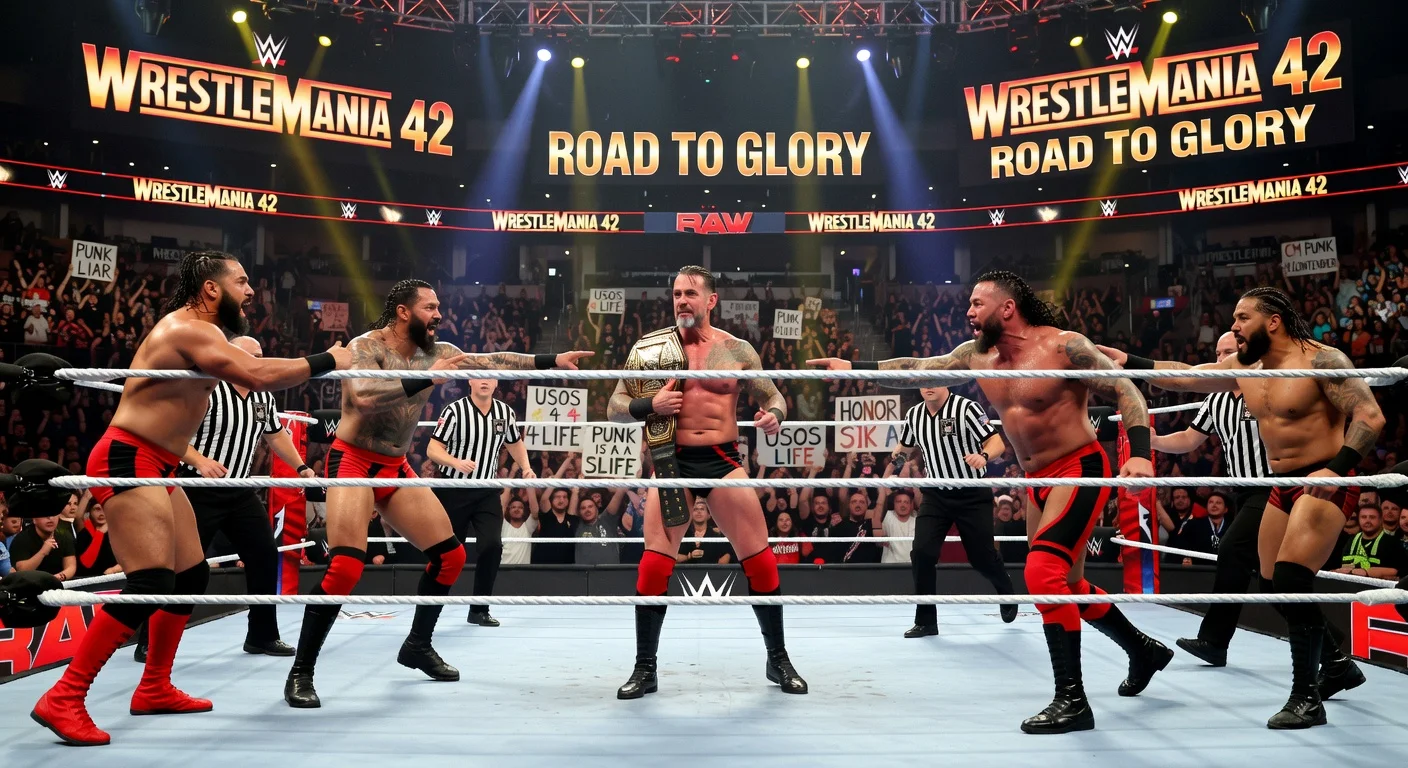 En el episodio del 9 de marzo de 2026 de WWE Raw, Los Usos confrontaron al Campeón Mundial Peso Pesado CM Punk por su comentario previo sobre enterrar a Roman Reigns junto a su difunto padre Sika Anoa'i. Punk emitió una disculpa burlona, desatando una pelea e intensificando las tensiones de Bloodline de cara a WrestleMania 42.