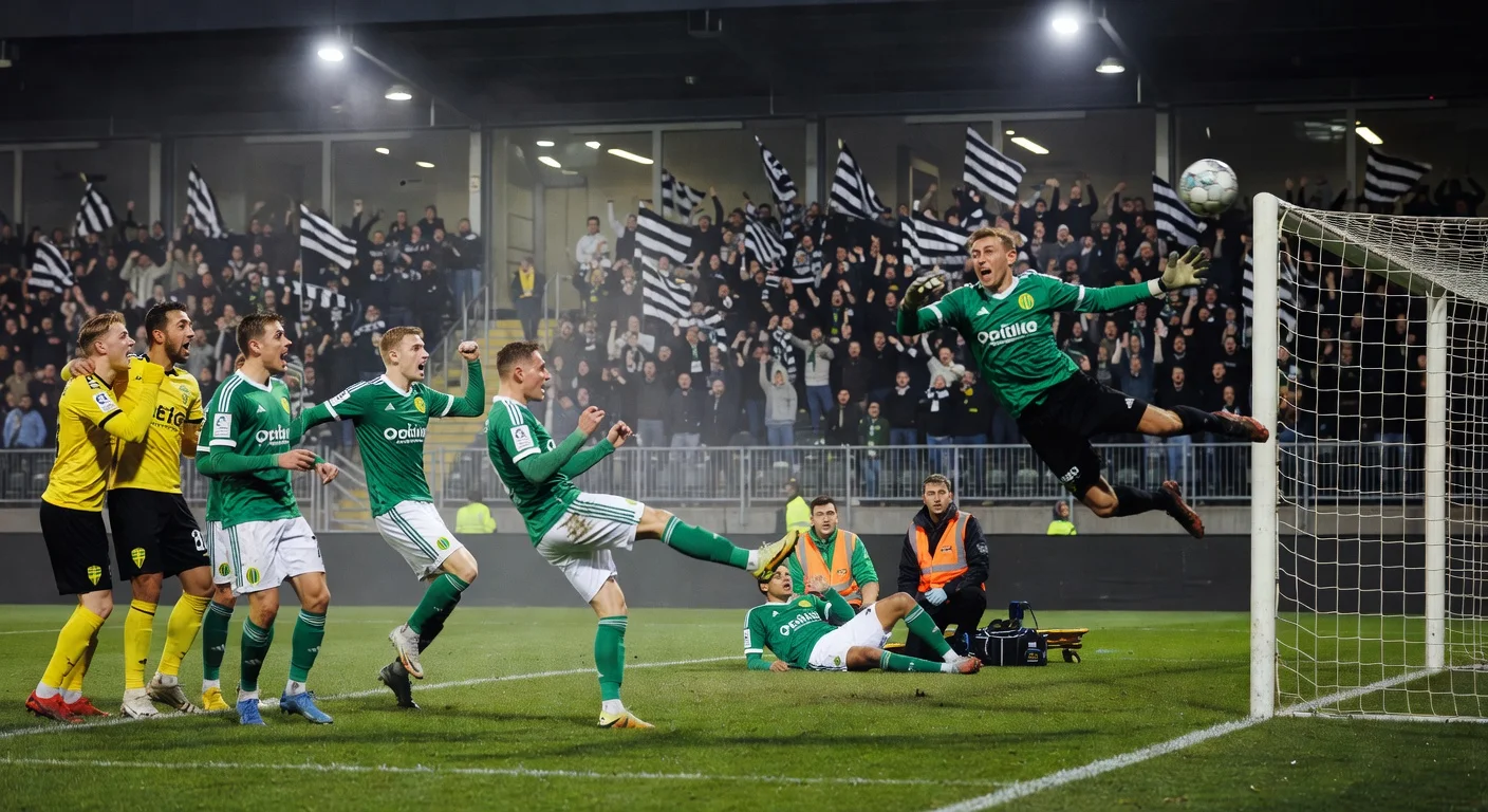 Ludvig Fritzson remató de cabeza a corta distancia, pero el balón impactó en la cara del portero, rebotó en el poste y el travesaño, y tocó en los pies de los defensas antes de salir a córner. El entrenador Henok Goitom suspiró: “99 gånger av 100 går den in” (99 de cada 100 veces entra). El propio Fritzson comentó: “Den ska bara sitta” (Esa simplemente tiene que entrar).