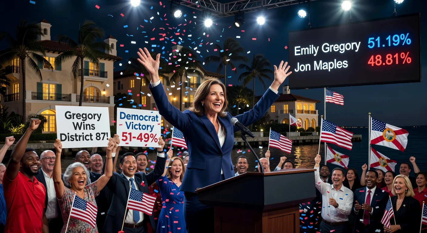 Según los resultados extraoficiales de la noche de las elecciones vinculados por The Daily Wire al sistema de reporte electoral de Florida, Gregory obtuvo el 51.19% de los votos frente al 48.81% de Maples en el distrito, que incluye a Mar-a-Lago. Los datos a nivel de condado citados en el mismo informe mostraron que Gregory obtuvo mejores resultados en el voto por correo, mientras que Maples tuvo un desempeño ligeramente superior entre los votantes que acudieron a las urnas en persona durante el periodo de votación anticipada.