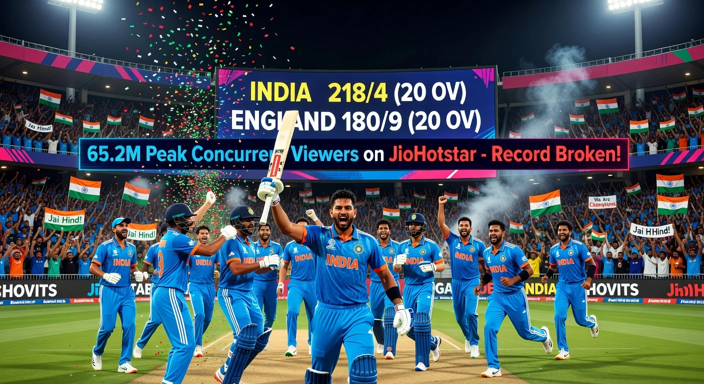 La semifinal del ICC T20 World Cup 2026 entre India e Inglaterra logró una audiencia digital sin precedentes, superando los choques tradicionales India-Pakistán. El presidente de la ICC, Jay Shah, destacó el pico de 65,2 millones de espectadores concurrentes en JioHotstar. India avanzó a la final contra Nueva Zelanda tras una victoria de alta puntuación.