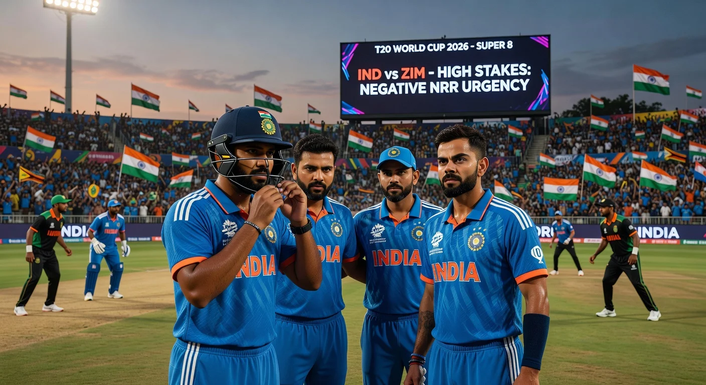Los campeones defensores India se enfrentan a Zimbabue en un decisivo partido de Super 8 del T20 World Cup 2026 el 26 de febrero en Chennai, buscando recuperarse de una derrota por 76 carreras ante Sudáfrica y mejorar su net run rate negativa. Se consideran cambios en el equipo, incluida la probable inclusión de Sanju Samson, para contrarrestar la amenaza de off-spin de Zimbabue. Una victoria por amplio margen es esencial para las esperanzas de semifinal de India.