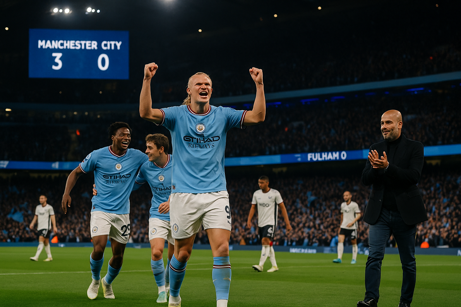 Manchester City ofreció una primera mitad dominante para derrotar 3-0 a Fulham el miércoles por la noche, 11 de febrero de 2026, en el Etihad Stadium. La victoria sigue su dramático regreso final contra Liverpool en Anfield el domingo y sitúa a City a tres puntos de los líderes Arsenal, que tienen un partido pendiente contra Brentford el jueves. Antoine Semenyo abrió el marcador en el minuto 24, empujando el balón después de que el centro de Matheus Nunes rebotara en Sander Berge hacia su camino. Semenyo asistió luego a Nico O'Reilly para el segundo gol solo seis minutos después, con O'Reilly elevando un remate sobre el portero Bernd Leno tras un rápido contraataque. Erling Haaland añadió el tercero en el minuto 39, disparando al ángulo inferior derecho tras un pase de Phil Foden, marcando su 29º gol de la temporada y su primer gol no de penalti en Premier League desde el 20 de diciembre. Haaland, que recibió un golpe antes del segundo gol, fue reemplazado al medio tiempo por Omar Marmoush tras informar al cuerpo técnico que no se sentía bien. Pep Guardiola describió la sustitución como precautoria, quitando hierro a las preocupaciones por lesión de cara al partido de FA Cup contra Salford City el sábado. Fulham mostró más intención en la segunda mitad pero no amenazó seriamente a Gianluigi Donnarumma, que realizó paradas clave ante Harry Wilson y Emile Smith Rowe. City gestionó el partido con comodidad pese a una bajada de intensidad, con Guardiola realizando cambios como Abdukodir Khusanov y Rayan Cherki para recuperar el control. Guardiola elogió el rendimiento de su equipo: «[Nuestro rendimiento fue] realmente bueno. Uno de los mejores de la temporada, [especialmente] después de Anfield.» El entrenador del Fulham Marco Silva reconoció la superioridad de City: «City fue mejor que nosotros, así de simple. No estuvimos al nivel.» Este resultado extiende la racha victoriosa de City ante Fulham a 20 partidos en todas las competiciones, la más larga en la historia del fútbol inglés. Fulham se queda en 12º posición tras su tercera derrota consecutiva.