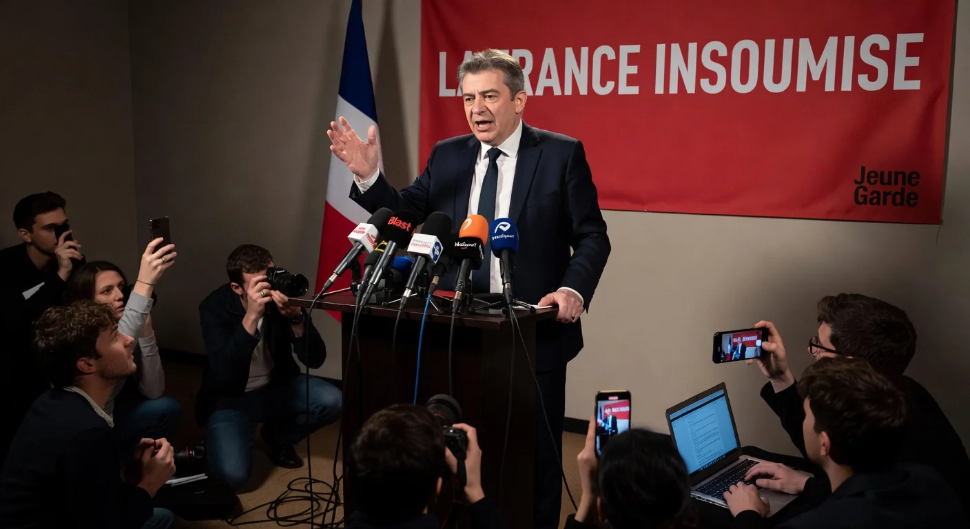 El 23 de febrero de 2026, Jean-Luc Mélenchon organizó una conferencia de prensa en La Fabrique, en el distrito 10 de París, excluyendo a los medios tradicionales como Le Monde, France Info o Libération. Invitó a 'nuevos medios' como Le Média y Blast, así como a asociaciones de izquierda como Alerte Racisme y creadores de contenido político. 'No tengo problema con los medios, son los medios los que tienen un problema conmigo', declaró al inicio, antes de criticar a los 'grandes medios' y canales de televisión que compara con 'sesiones de inquisición'.