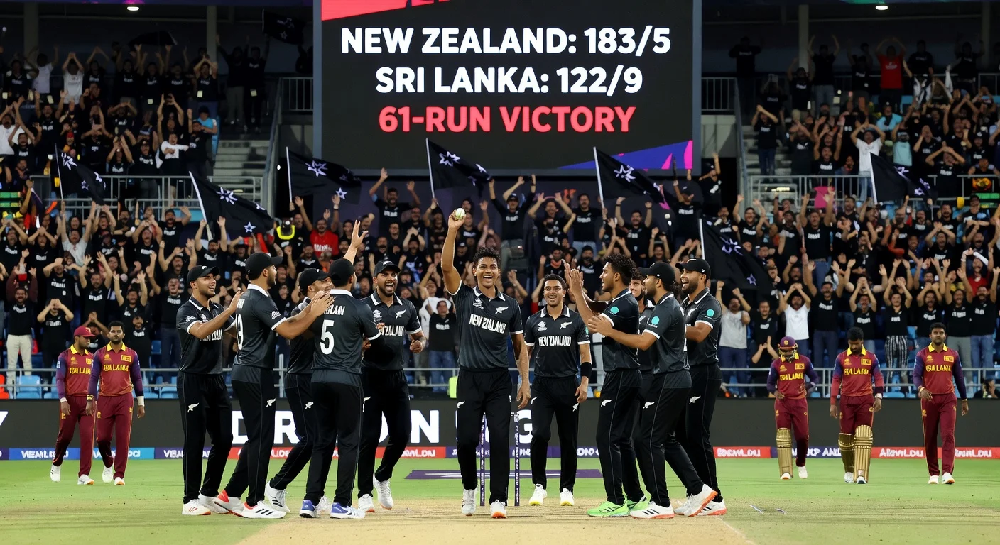 New Zealand secured a 61-run victory over co-hosts Sri Lanka in a crucial Super Eights match at the R Premadasa Stadium in Colombo, eliminating the home team from the T20 World Cup 2026. Rachin Ravindra's four-wicket haul and useful batting contribution proved decisive in the win. The result leaves New Zealand in a strong position to advance to the semi-finals.