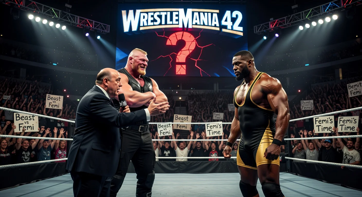 WWE se enfrenta a un desafío para programar al oponente de Brock Lesnar en WrestleMania 42 tras informes de que Lesnar y su representante Paul Heyman han insistido en que no pierda ningún combate hasta su retiro. Los fans han presionado por un enfrentamiento contra el bicampeón de NXT Oba Femi, insinuado en el Royal Rumble de enero, pero esto podría chocar con los planes creativos. Ahora se consideran oponentes alternativos como LA Knight.