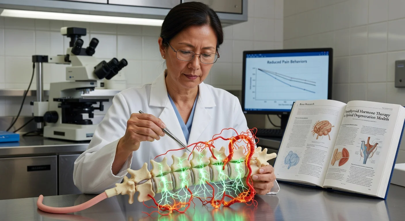 Un estudio publicado en la revista *Bone Research* informa que la hormona paratiroidea (PTH) redujo los comportamientos relacionados con el dolor en modelos de ratón con degeneración espinal, aparentemente al fortalecer las placas terminales vertebrales y activar señales de las células óseas que repelen las fibras nerviosas que detectan el dolor. El trabajo fue dirigido por la Dra. Janet L. Crane de la Facultad de Medicina de la Universidad Johns Hopkins.