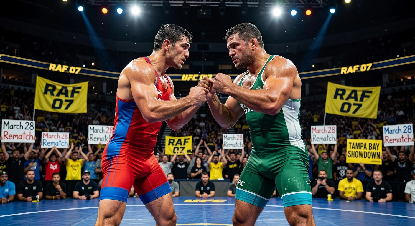 Real American Freestyle (RAF) confirmó la revancha de lucha entre el ligero clasificado en UFC Arman Tsarukyan y Georgio Poullas vía redes sociales el 6 de marzo de 2026, programada para encabezar RAF 07 el 28 de marzo en el Yuengling Center en Tampa, Florida, con transmisión en vivo por Fox Nation. El enfrentamiento surge de su combate en RAF 06 el 28 de febrero de 2026 en Tempe, Arizona, donde Tsarukyan ganó 5-3 en medio del caos posterior al combate: Tsarukyan empujó a Poullas al suelo, la seguridad intervino después de que los golpes durante el combate de Poullas provocaran protestas, y Poullas reclamó después una victoria por 'takedown verdadero' desde una ambulancia. Una revancha solo por sumisión planeada para el 11 de marzo en Hype Fighting Championship en Brasil se frustró cuando Poullas se retiró, priorizando las reglas de RAF. Los ejecutivos de RAF habían presionado para que su promoción albergara la secuela. La rivalidad ha destacado el estatus de contendiente de Tsarukyan frente a Poullas, ex luchador universitario y personalidad de redes sociales.