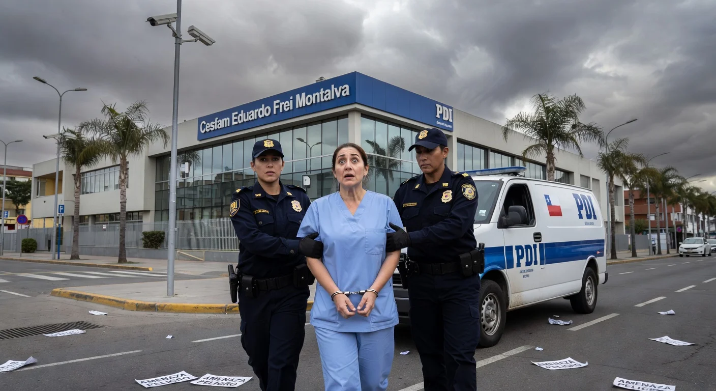 Chile's Policía de Investigaciones (PDI) detained a 47-year-old worker at the Cesfam Eduardo Frei Montalva health center in La Cisterna after she posted printouts threatening shootings. Colleagues reported the notes to police, and security cameras identified her. She faces a detention review on Monday for the crime of threats.