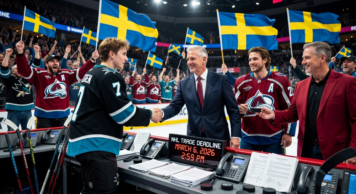 The NHL trade deadline on March 6, 2026, saw several deals, including two involving Swedish players. Timothy Liljegren moved from the San Jose Sharks to the Washington Capitals, while Victor Olofsson was part of a larger trade sending him from the Colorado Avalanche to the Calgary Flames. Nazem Kadri returned to the Avalanche in that blockbuster exchange.