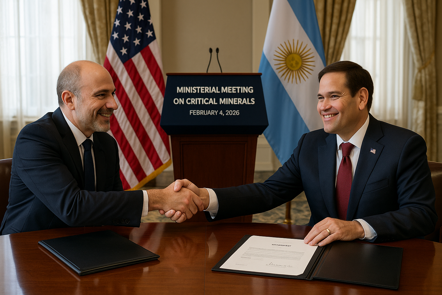 L'Argentine et les États-Unis ont signé un accord à Washington D.C. pour stimuler l'approvisionnement et le traitement des minéraux critiques, essentiels aux nouvelles technologies. Le ministre des Affaires étrangères Pablo Quirno et son homologue Marco Rubio ont participé à la signature lors de la réunion ministérielle sur les minéraux critiques le 4 février 2026.