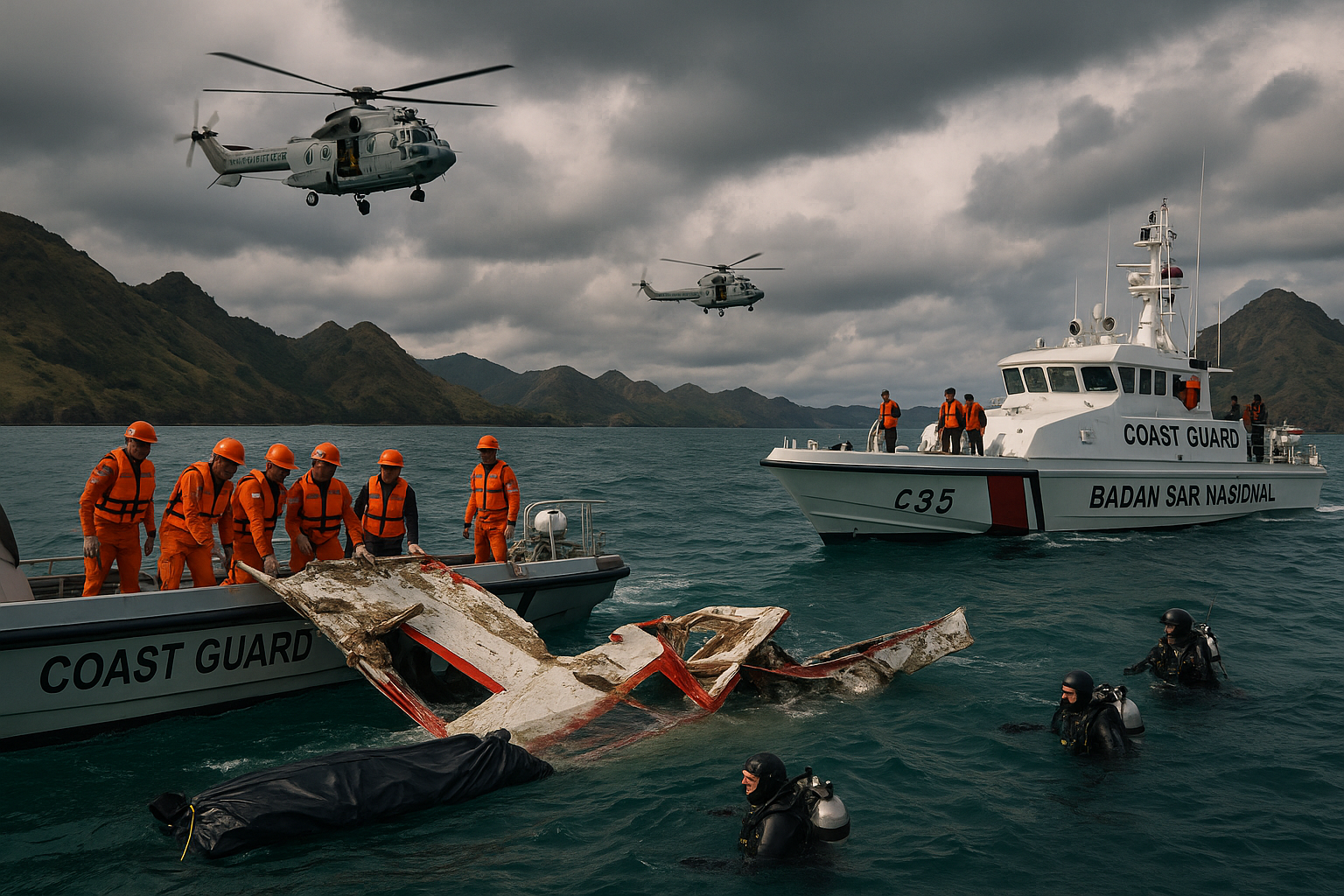 Les premiers survivants étaient Ortuño et sa fille de 7 ans ; quatre membres d'équipage et un guide ont également été secourus. Les recherches, coordonnées par BASARNAS depuis Labuan Bajo, ont été prolongées. La famille a déclaré qu'elle ne retournerait pas en Espagne sans tous ses membres, en remerciant les autorités. Le soutien local inclut une veillée et une messe dirigée par le père Hermen Sanusi, suivie par plus de 1 000 personnes. Des ressources supplémentaires sont déployées alors que l'opération se poursuit au moins jusqu'au mercredi.