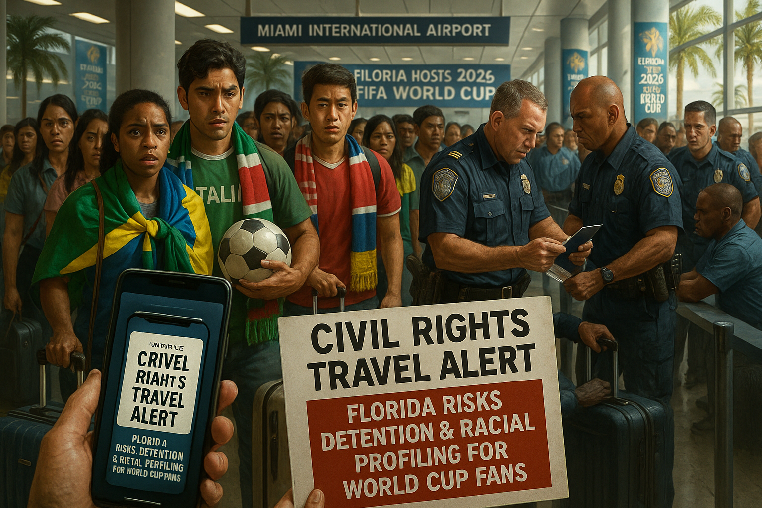 Le 4 février 2026, une coalition incluant l'American Civil Liberties Union of Florida, la Florida Immigrant Coalition, l'American Friends Service Committee, le Family Action Network Movement et Semillas de Colombia a émis une alerte voyage à l'échelle de l'État. L'avis exhorte les visiteurs à 'reconsidérer les voyages dans l'État', soulignant les dangers pour les droits, la liberté et la sécurité physique face à des rapports de touristes et de citoyens américains détenus sans motif à des fins d'immigration. L'avertissement se concentre sur la Coupe du monde FIFA, qui débutera en juin 2026, avec sept matchs prévus dans le sud de la Floride au Hard Rock Stadium à Miami Gardens. Ceux-ci incluent des matchs de phase de groupes comme Portugal contre Colombie, Arabie saoudite contre Uruguay et Uruguay contre Cap-Vert en juin, ainsi que Brésil contre Écosse, un match des 32es de finale, un quart de finale et le match pour la troisième place en juillet. Les groupes craignent que les tactiques d'application, impliquant des agents fédéraux et locaux, ne s'intensifient pendant l'événement, menant à des arrêts, interrogatoires ou détentions injustifiés basés sur l'apparence, l'accent ou la nationalité. 'La Floride n'est plus une destination sûre pour les touristes internationaux', a déclaré Tessa Petit, directrice exécutive de la Florida Immigrant Coalition, lors d'une conférence de presse le 5 février à l'extérieur des bureaux de la FIFA près de Miami. 'Quand des agents fédéraux et locaux peuvent détenir n'importe qui à n'importe quel moment sans motif et sans s'identifier, tout le monde est en danger.' Elle s'est interrogée sur le fait de savoir si assister à un match de football justifie le risque d' 'être enlevé et emprisonné jusqu'à on-ne-sait-quand, dans des conditions déplorables, par une police secrète qui utilise le profilage racial.' La coalition conseille aux voyageurs d'exercer une extrême prudence, de porter une identification en permanence et de s'enregistrer auprès de leur consulat avant l'arrivée, mais s'arrête juste avant d'appeler au boycott. Le gouverneur de Floride Ron DeSantis a répondu sur les réseaux sociaux, qualifiant l'alerte de 'coup de pub gauchiste' de la part de groupes 'furieux que la Floride les batte sur les questions.' Bryan Griffin, président et PDG de Visit Florida, a fait écho, qualifiant les avis de 'ridicules et politiquement motivés' et assurant que 'les visiteurs légaux n'ont aucune raison de s'inquiéter.' À l'international, l'avocat suisse Mark Pieth, ancien président d'un comité de surveillance FIFA, a exhorté les fans à 'rester loin des États-Unis', déclarant au journal Der Bund qu'ils pourraient faire face à une expulsion immédiate s'ils déplaisent aux officiels. L'ancien président FIFA Sepp Blatter a acquiescé sur les réseaux sociaux, disant que Pieth a 'raison de questionner cette Coupe du monde.' Les défenseurs citent des cas spécifiques, comme un touriste mexicain détenu lors d'un contrôle routier à Orlando et expulsé, et un ressortissant allemand détenu plus de deux semaines par les Customs and Border Protection. Ils soutiennent que les forces de l'ordre de l'État et locales, habilitées par des accords fédéraux 287(g), transforment des interactions routinières en risques d'immigration, même pour les citoyens américains.