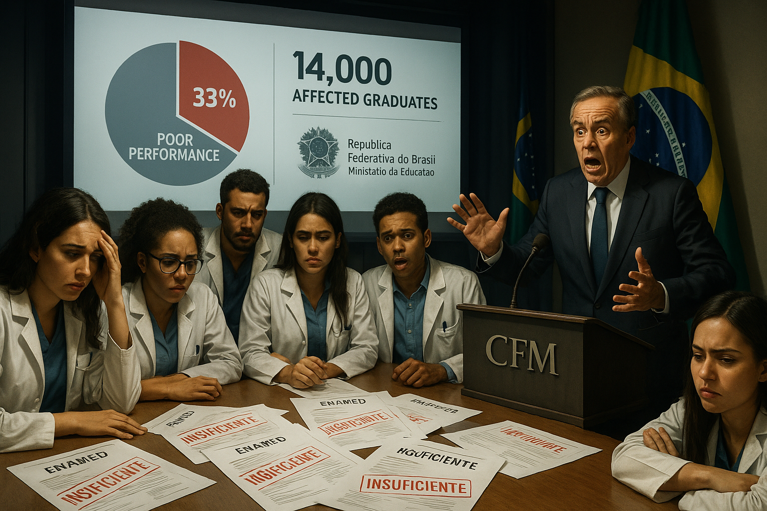 L'Enamed, un examen national obligatoire pour les étudiants en médecine en dernière année, a été administré pour la première fois en 2025, avec des résultats publiés le 19 janvier 2026. Sur les 351 cours évalués, 107 ont reçu les concepts 1 ou 2 sur une échelle de 1 à 5, ce qui signifie que moins de 60 % des diplômés ont atteint la proficiency minimale. Ces cours appartiennent à 97 institutions, principalement privées, concentrées dans les régions Sud-Est, Nord-Est et Centre-Ouest. Près de 14 000 diplômés — précisément 13 871 — proviennent d'institutions à faibles scores, selon le Conseil fédéral de médecine (CFM). Le président du CFM, José Hiran Gallo, a déclaré : « Ce sont 13 871 diplômés en médecine qui recevront des diplômes et des licences pour servir la population sans avoir les compétences minimales pour exercer la médecine. C'est alarmant et cela met en danger la santé et la sécurité de millions de Brésiliens. » Le groupe éducatif Afya, leader dans les acquisitions d'écoles de médecine depuis 2018, a eu 13 de ses unités avec un concept 2, comme le Centro Universitário de Araguaína (GO) et la Faculdade de Ciências Médicas de Itabuna (BA). Dans un communiqué, Afya a contesté les résultats : « Les résultats d'Enamed ont été divulgués aux institutions en décembre via le système e-MEC et indiquaient que 70 % des institutions d'Afya avaient obtenu des scores de 3 à 5. » L'entreprise affirme que les données ont été modifiées après avoir été initialement publiées. D'autres grands groupes, comme Cogna, Yduqs, Ser Educacional et Ânima, figurent également sur la liste des faibles scores. Administré par l'Inep, l'examen se concentre sur les compétences cliniques, éthiques et sociales, avec 100 questions basées sur des cas pratiques du SUS, en mettant l'accent sur des scénarios réels comme les diagnostics de diabète, les urgences chirurgicales et la santé publique. Comme il s'agit de la première édition, les sanctions seront graduelles : 21 institutions font face à une surveillance plus stricte, et huit pourraient voir la suspension de nouvelles inscriptions. Les cours ont 30 jours pour une défense administrative. Le MEC utilise l'Enamed pour réglementer la qualité de la formation médicale, qui s'est rapidement étendue dans le secteur privé sans normes adéquates, selon le CFM.