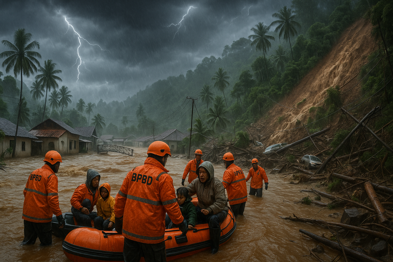 Abdul Muhari de BNPB a expliqué que les conditions météorologiques extrêmes ont été déclenchées par le cyclone tropical KOTO dans la mer de Sulu et le cyclone Seed 95B dans le détroit de Malacca, formant des nuages convectifs étendus et des pluies abondantes. Des centaines de personnels conjoints sont déployés pour les évacuations et les abris. Le potentiel de pluies extrêmes persiste pendant les 24 prochaines heures, avec une surveillance étroite à Tapanuli Raya.