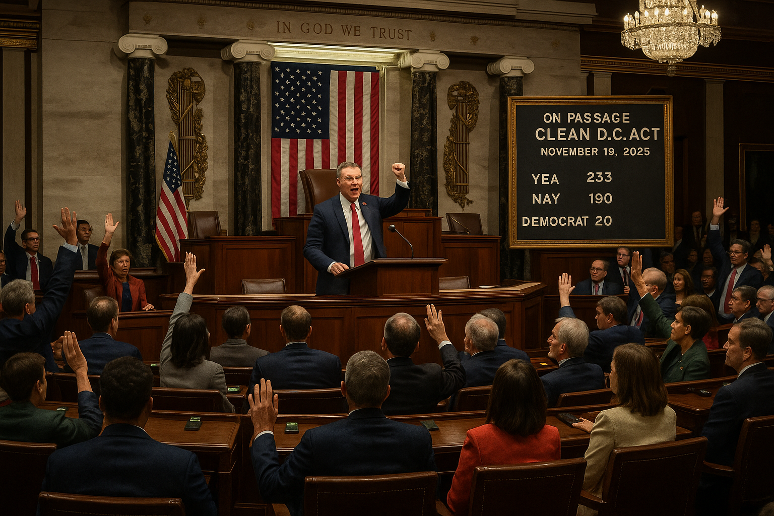 La Chambre des représentants des États-Unis a approuvé le 19 novembre 2025 la loi CLEAN D.C., un projet de loi dirigé par les républicains visant à annuler une grande partie de la loi sur la police de Washington de 2022. La mesure, parrainée par le représentant Andrew Clyde, a été adoptée par 233-190, avec 20 démocrates rejoignant les républicains et se dirige maintenant vers le Sénat.