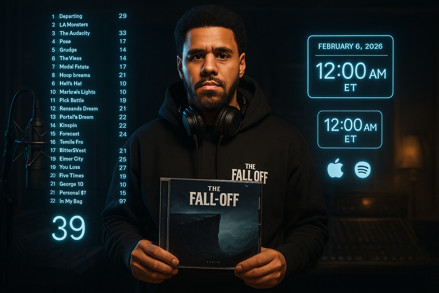 Le tant attendu septième album studio de J. Cole, The Fall-Off, sort le 6 février 2026, marquant son premier projet long format depuis The Off-Season de 2021. Cette sortie double disque explore des thèmes de sa vie à 29 et 39 ans, avec un total de 24 pistes incluant des bonus. Les fans peuvent l'attendre sur les principales plateformes de streaming à minuit ET.
