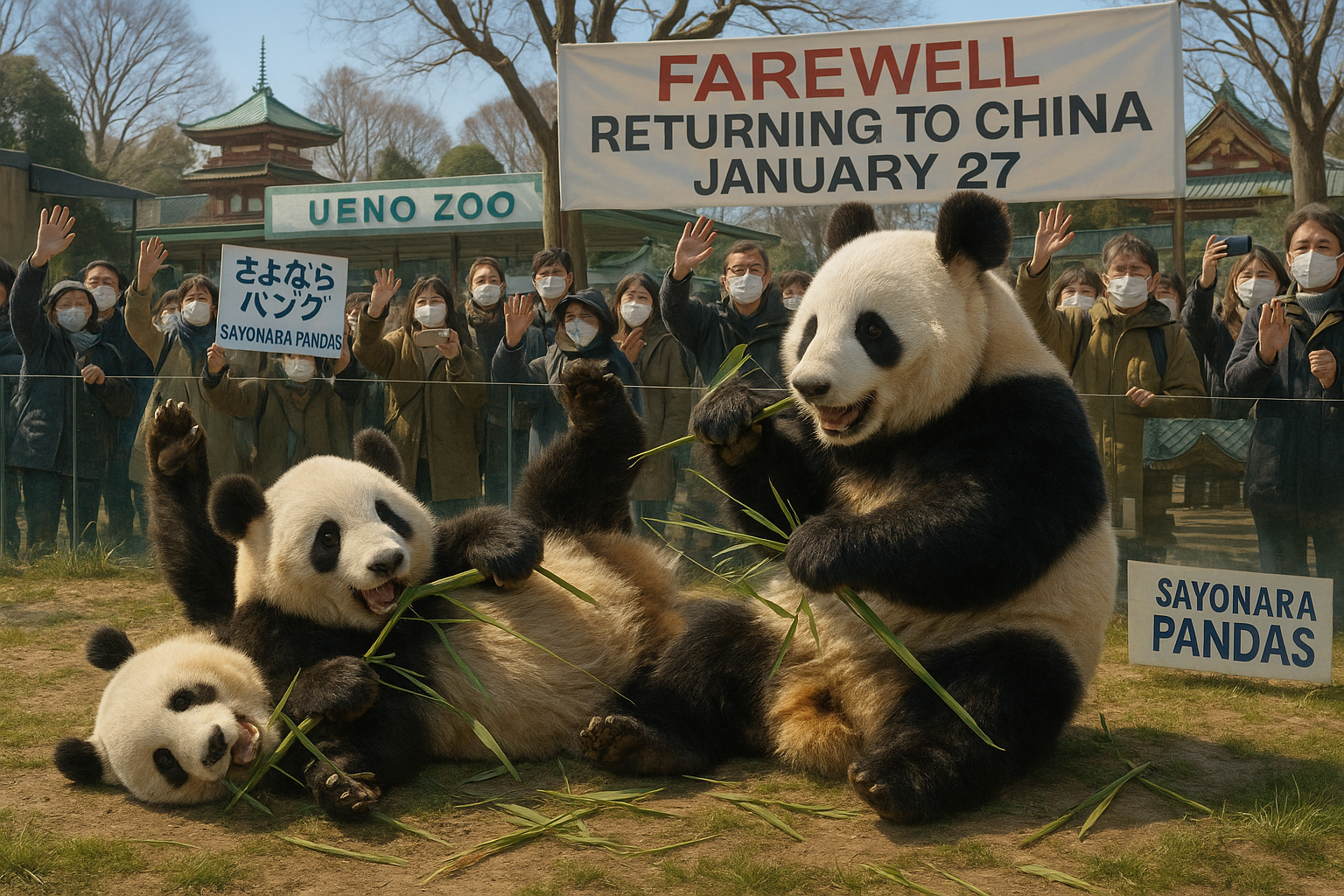 The last two giant pandas at Tokyo's Ueno Zoo, twins Xiao Xiao and Lei Lei, are set to return to China on January 27. The final public viewing will be on January 25, with transportation from Narita Airport. This marks the first time Japan will be without giant pandas since their arrival in 1972.