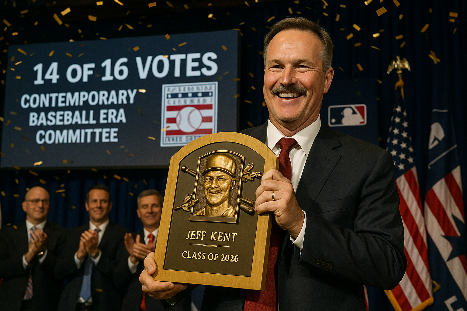 The Contemporary Baseball Era committee has elected Jeff Kent to the Baseball Hall of Fame's Class of 2026, receiving 14 of 16 votes. Kent was the only player to reach the 75% threshold on a ballot that included Barry Bonds and Roger Clemens, who fell short with fewer than five votes each. Former Red Sox closer Jonathan Papelbon expressed disagreement with the committee's decision.