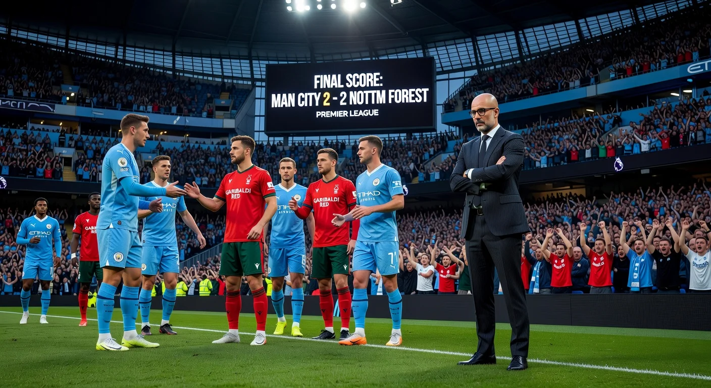 Manchester City a été tenu en échec 2-2 par Nottingham Forest au stade Etihad, mettant fin à leur série de six victoires consécutives. Ce résultat laisse City à sept points des leaders Arsenal avec un match en moins et neuf rencontres restantes. Pep Guardiola a maintenu que la course au titre reste ouverte.