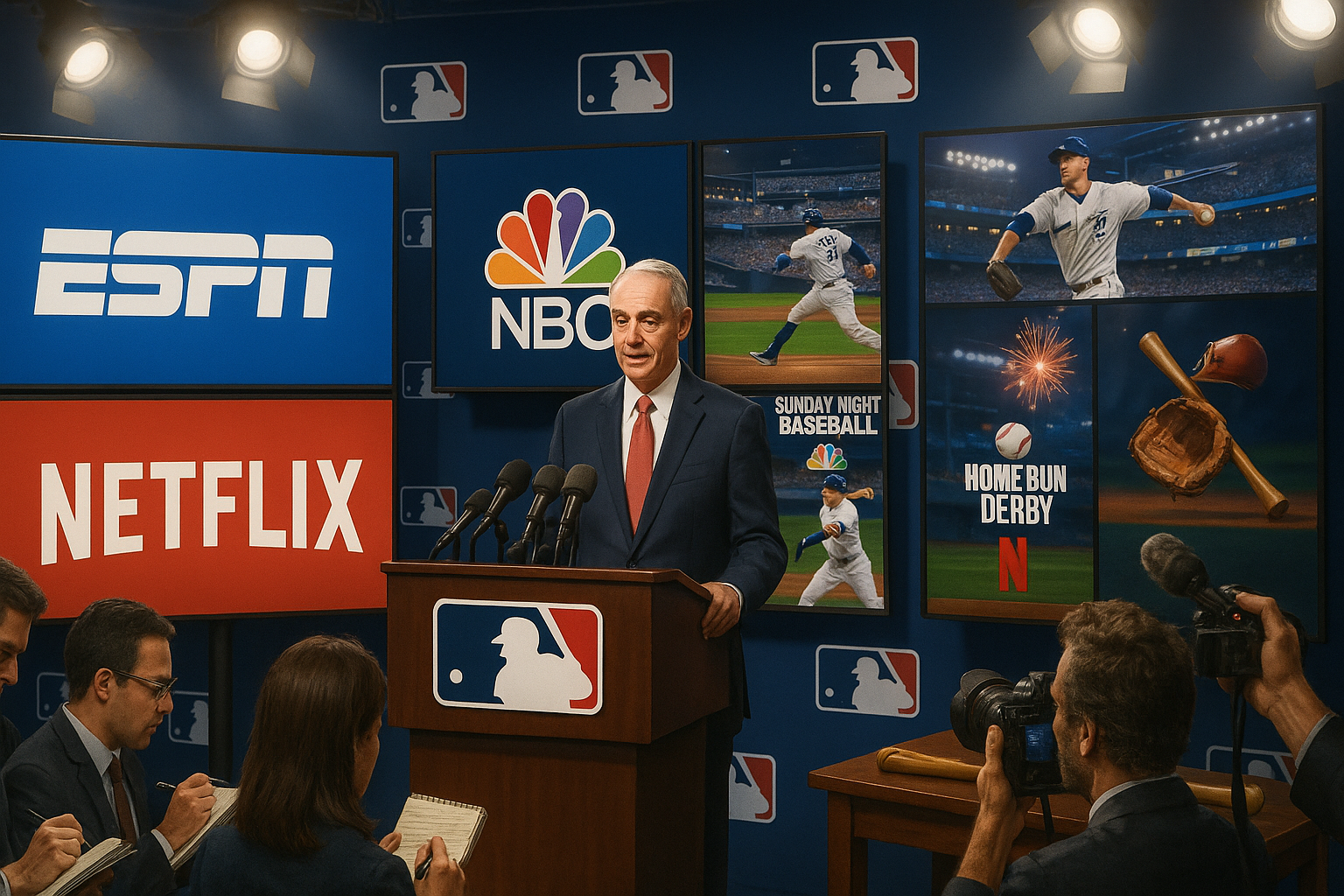 La Major League Baseball a révélé des accords de droits médiatiques de trois ans avec ESPN, NBC et Netflix mercredi, après que ESPN a renoncé plus tôt à son contrat précédent. Ces accords, d'une valeur de près de 750 millions de dollars par an, redistribuent des diffusions clés incluant Sunday Night Baseball à NBC et le Home Run Derby à Netflix. Ces partenariats visent à élargir la couverture nationale à partir de 2026 tout en intégrant MLB.TV à la plateforme de streaming d'ESPN.