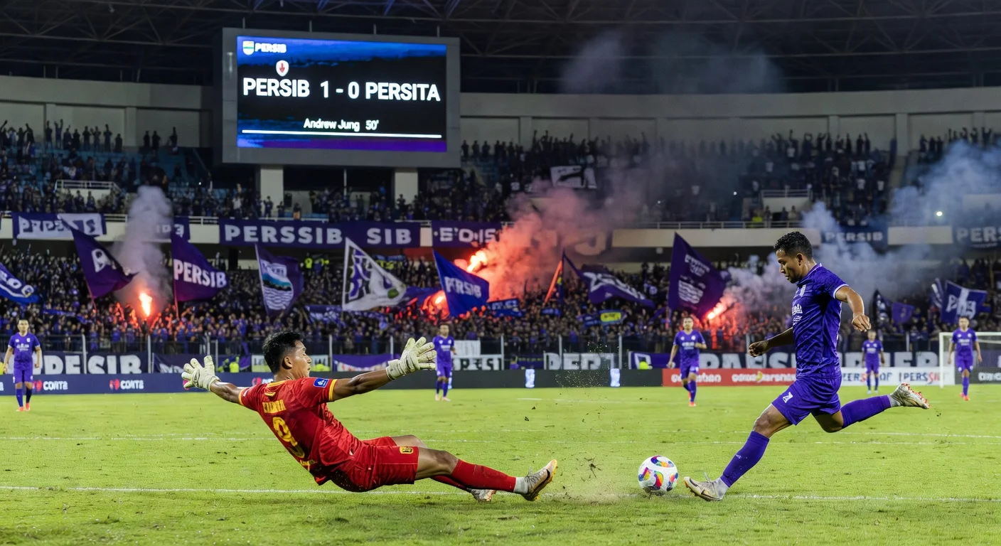 Persib Bandung a remporté une étroite victoire 1-0 contre Persita Tangerang lors de la 22e semaine de la Super League 2025/2026 au Stadion Gelora Bandung Lautan Api le 22 février 2026. Le but unique d'Andrew Jung à la 50e minute s'est avéré décisif, malgré un match difficile en raison de la farouche résistance de Persita. Un incident unique s'est produit en fin de match lorsque le gardien de Persita, Igor Rodrigues, a reçu un carton rouge, forçant l'attaquant Hokky Caraka à jouer gardien d'urgence.