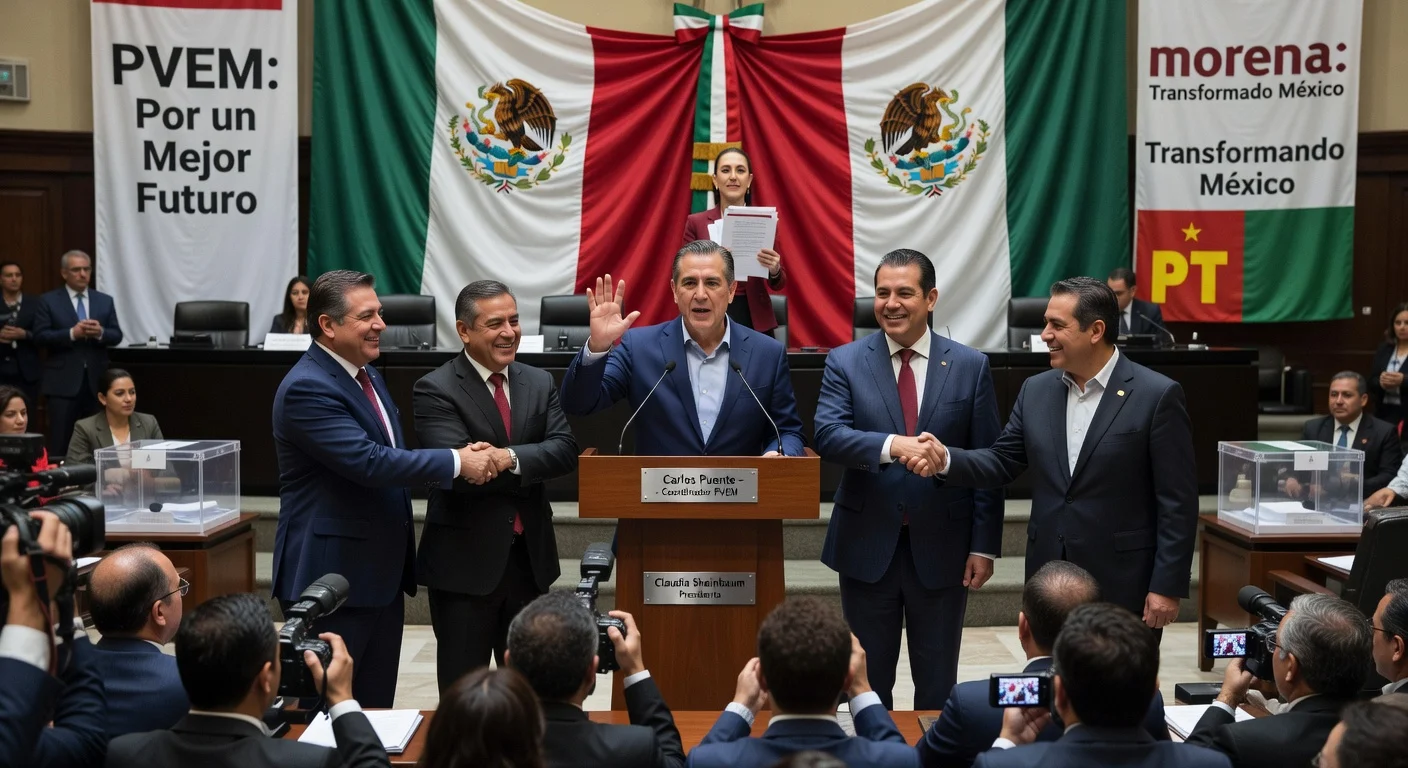 Le 24 février 2026, au milieu des tensions sur la réforme électorale poussée par la présidente Claudia Sheinbaum, le Parti Vert Écologiste de Mexico (PVEM) a réaffirmé son engagement envers la coalition au pouvoir. Carlos Puente, coordinateur adjoint du PVEM, a déclaré dans une interview : 'Notre coalition du Vert, Morena et du Parti du Travail est plus ferme que jamais. Nous sommes unis pour 2027, unis pour 2030, visant une majorité qualifiée en 2027 et c'est ainsi que nous sortirons.' Cette position intervient au milieu de spéculations sur une possible rupture dans l'alliance 4T, au pouvoir depuis 2018. nnSheinbaum a présenté la proposition à ses alliés le 23 février, mais des rapports indiquent que PVEM et PT ont demandé du temps pour l'évaluer, retardant sa soumission au Congrès jusqu'au 25 février après des 'changements mineurs'. Les piliers non négociables, selon la présidente, incluent la modification de l'élection des sièges plurinominaux pour que les candidats 'aillent sur le terrain chercher les votes' au lieu de listes imposées par les partis, la réduction des coûts de l'INE, des coupes budgétaires aux partis politiques et une diminution des dépenses pour les congrès étatiques et les officiels municipaux. Sheinbaum a souligné : 'Il y a reconnaissance des minorités, mais d'une manière différente ; réduction des coûts électoraux, des partis, voire des congrès'. nnCependant, le sénateur Morena Gerardo Fernández Noroña a exhorté PVEM et PT à soutenir l'initiative, précisant qu'elle ne vise pas à éliminer la représentation proportionnelle mais à changer son mécanisme pour que les candidats obtenant au moins 3 % des voix mènent des campagnes directes. D'autre part, l'opposition critique durement la réforme. Le leader du PRI Alejandro Moreno Cárdenas l'a qualifiée de 'loi Maduro' qui détruirait la démocratie, notant que même des alliés comme PVEM et PT sont en désaccord. Ricardo Anaya du PAN a ajouté que l'objectif semble affaiblir l'INE sans aborder le financement du crime organisé. nnAlors que le PVEM insiste sur la solidité de l'alliance, des divergences persistent, et Ricardo Monreal de Morena a promis de chercher des consensus pour faire avancer la réforme au Congrès.