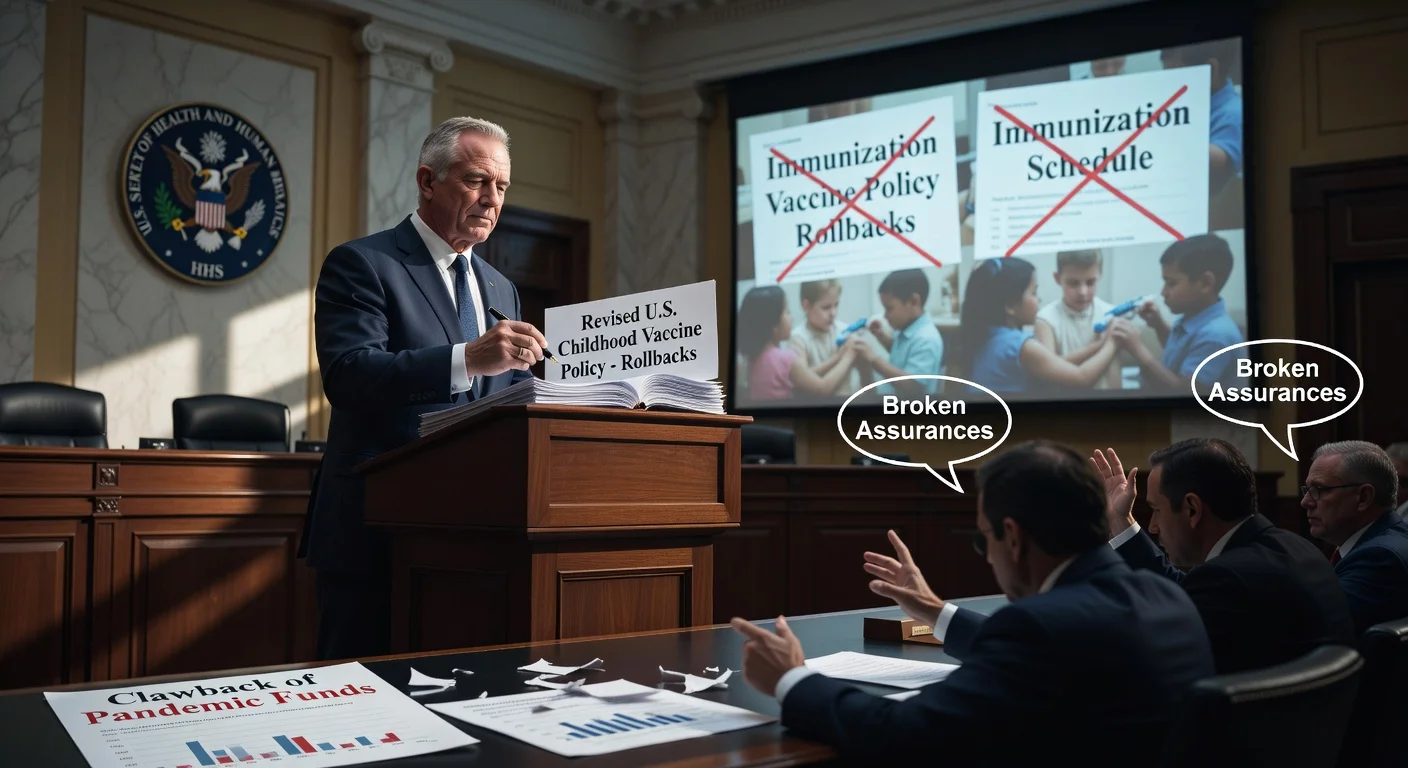 Robert F. Kennedy Jr. a prêté serment en tant que 26e secrétaire du Département américain de la Santé et des Services sociaux le 13 février 2025, lors d’une cérémonie à la Maison Blanche, après confirmation du Sénat par 52 voix contre 48. (hhs.gov)nnLors du processus de confirmation de Kennedy, des sénateurs démocrates et républicains l’ont interrogé sur son long passé de scepticisme vaccinal et son impact potentiel sur la politique vaccinale fédérale. Certains législateurs ont ensuite déclaré que Kennedy s’était engagé à maintenir stables le processus consultatif fédéral sur les vaccins et leurs recommandations.nn## Changements dans les directives vaccinales des CDCnEn juin 2025, Kennedy a limogé les 17 membres du Comité consultatif sur les pratiques d’immunisation (ACIP) des CDC, un panel qui examine les preuves et formule des recommandations vaccinales qui guident généralement la pratique clinique et la couverture d’assurance. (cnbc.com)nnDébut janvier 2026, le gouvernement fédéral a annoncé une refonte du calendrier de vaccination infantile réduisant le nombre de vaccins recommandés pour tous les enfants. Selon les documents publiés par le HHS et les CDC, les vaccins contre la grippe, le rotavirus, l’hépatite A, l’hépatite B, le COVID-19 et la méningite ont été retirés de la catégorie « recommandés pour tous les enfants » et placés dans des recommandations à haut risque ou « décision clinique partagée », ce qui signifie que la vaccination dépendrait de discussions individualisées entre cliniciens et familles. (apnews.com)nn## Litiges sur le financement de la santé publique et recours judiciairesnEn mars 2025, l’administration a déclaré qu’elle révoquerait environ 11,4 milliards de dollars de financements de santé publique non utilisés de l’ère COVID des départements de santé des États et locaux et d’autres bénéficiaires. Le HHS a argué que la pandémie était terminée et que les subventions n’étaient plus nécessaires ; les responsables de la santé publique et les États dirigés par des démocrates ont affirmé que l’argent soutenait une surveillance élargie des maladies et une capacité de vaccination, et ont mis en garde contre des coupes dans les services essentiels. (cnbc.com)nnUne coalition d’États et le District de Columbia a intenté une action en justice, et un juge fédéral a ensuite prolongé une injonction empêchant l’administration de mettre fin au financement. (yahoo.com)nn## Priorités de recherche : subventions sur l’hésitation vaccinale et financement ARNm nEn mars 2025, le Washington Post a rapporté que les NIH ont cherché à mettre fin ou limiter des dizaines de subventions axées sur l’hésitation vaccinale et l’adhésion aux vaccins, citant des communications internes décrivant ces prix comme non alignés sur les priorités de l’agence. (washingtonpost.com)nnPar ailleurs, le HHS a annoncé en août 2025 qu’il mettait fin aux activités de développement de vaccins ARNm sous BARDA, affectant 22 projets d’une valeur de « près de 500 millions de dollars », selon le département. (hhs.gov)nn## Allégations sur l’autisme et les vaccinsnKennedy a été une figure de proue dans la promotion d’allégations liant vaccins et autisme, rejetées à maintes reprises par les agences de santé publique et les groupes médicaux. Des décennies de recherches approfondies n’ont trouvé aucun lien causal entre vaccins et autisme. Un article de 1998 suggérant un lien entre le vaccin ROR et l’autisme a été rétracté, et son auteur principal a perdu sa licence médicale au Royaume-Uni pour manquements éthiques et professionnels graves. (factcheck.org)nnLe HHS n’a pas répondu dans les sources disponibles à toutes les caractérisations spécifiques des changements décrites par les critiques, mais le département a défendu les évolutions politiques plus larges comme des efforts pour restaurer la confiance et aligner les recommandations sur les pratiques internationales tout en maintenant l’accès et la couverture d’assurance. (hhs.gov)