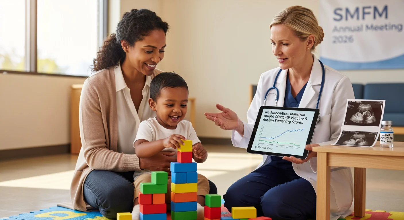 Une étude observationnelle prospective présentée à la Pregnancy Meeting 2026 de la Society for Maternal-Fetal Medicine (SMFM) a rapporté aucune différence significative dans les résultats de dépistage liés à l'autisme ou d'autres mesures neurodéveloppementales chez les tout-petits dont les mères ont reçu un vaccin ARNm COVID-19 pendant la grossesse ou dans les 30 jours précédant la conception, par rapport aux tout-petits dont les mères n'ont pas reçu de vaccin ARNm pendant cette période.