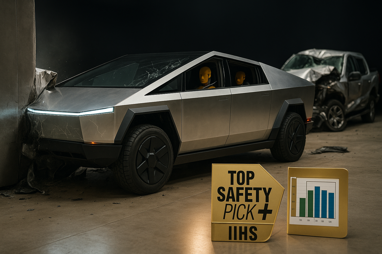 Notamment, le « Bon » du Cybertruck au test de chevauchement frontal modéré mis à jour contraste avec le « Mauvais » du Ford F-150 (risque élevé de blessures pour l'occupant arrière), « Acceptable » du Rivian R1T et « Acceptable » du Toyota Tundra en prévention des collisions avec piétons (où le Cybertruck a obtenu « Bon »). La prévention des collisions frontales pour piétons a également été notée « Bonne », aidée par des systèmes avancés malgré le design angulaire du camion. Les phares ont obtenu « Bon » après une mise à jour over-the-air rétroactive corrigeant l'éblouissement.