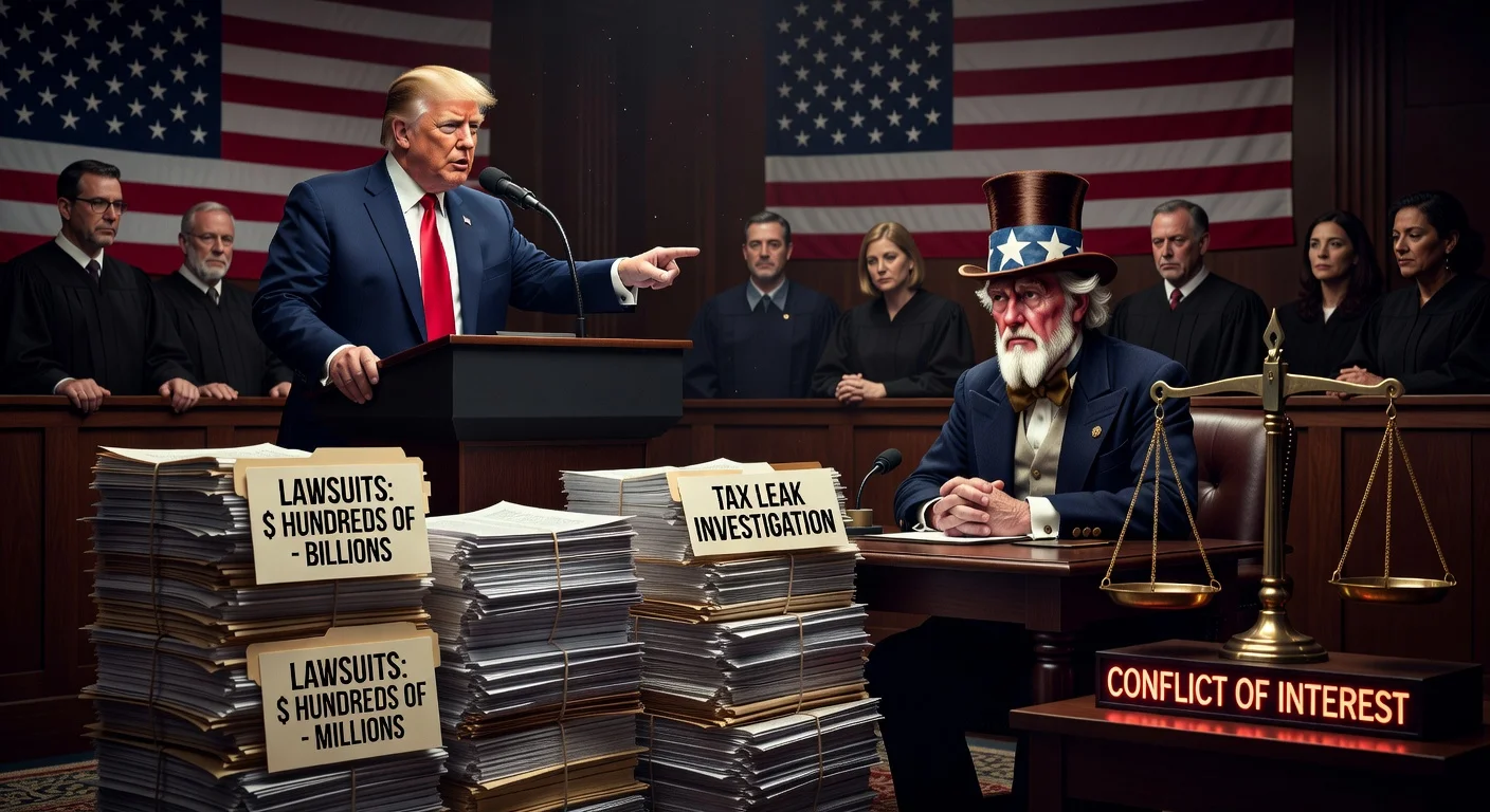 Le président Donald Trump et ses entités commerciales ont engagé des réclamations légales et des poursuites judiciaires visant des centaines de millions à des milliards de dollars auprès du gouvernement américain pour d'anciennes enquêtes fédérales et la fuite de ses informations fiscales, des démarches que les critiques et spécialistes de l'éthique qualifient de créant des conflits d'intérêts inhabituellement directs pour une administration qui superviserait toute réponse ou règlement.