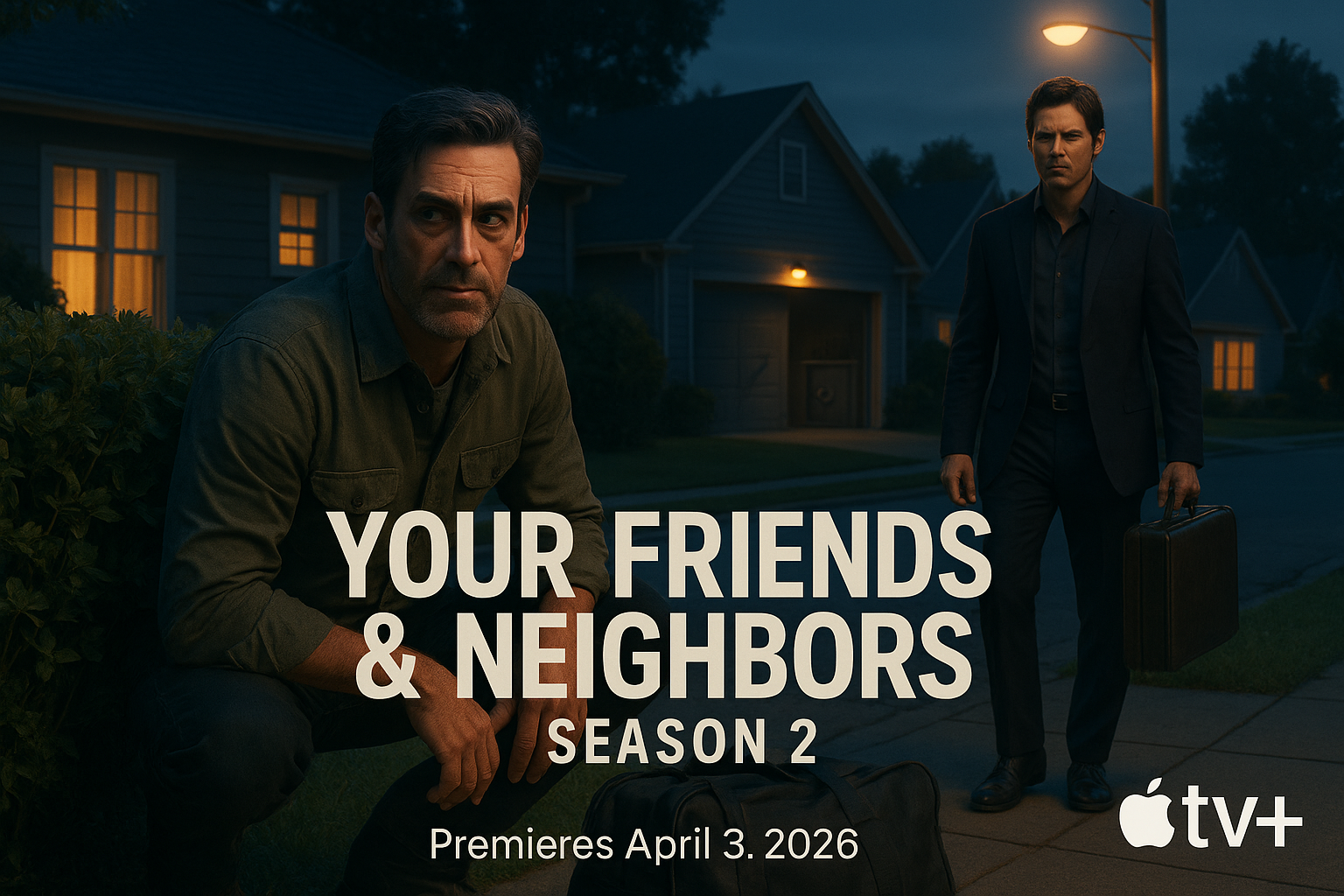 Apple TV+ a annoncé que la deuxième saison de sa comédie noire-drame criminel Your Friends & Neighbors sera diffusée le 3 avril 2026. Avec Jon Hamm dans le rôle d'un voleur de banlieue, la saison de 10 épisodes sortira chaque semaine jusqu'au 5 juin. James Marsden rejoint le casting en tant que nouveau voisin menaçant les secrets du protagoniste.