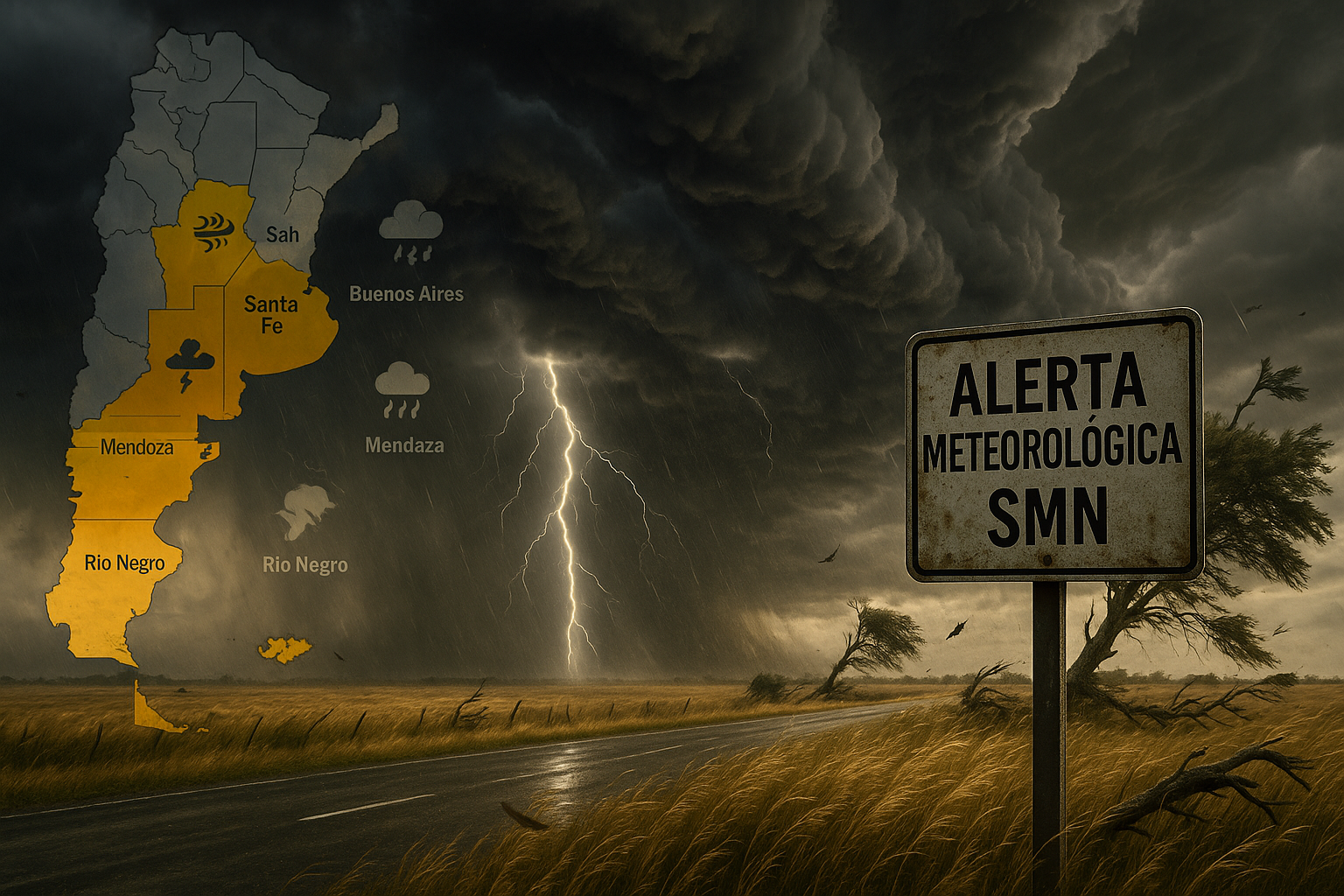 Argentina's National Meteorological Service (SMN) activated several weather alerts for Tuesday, February 10, 2026, anticipating adverse conditions in multiple provinces. Yellow alerts for strong winds affect La Pampa and Buenos Aires, while Santa Fe faces one for storms and Chubut for rain and winds.