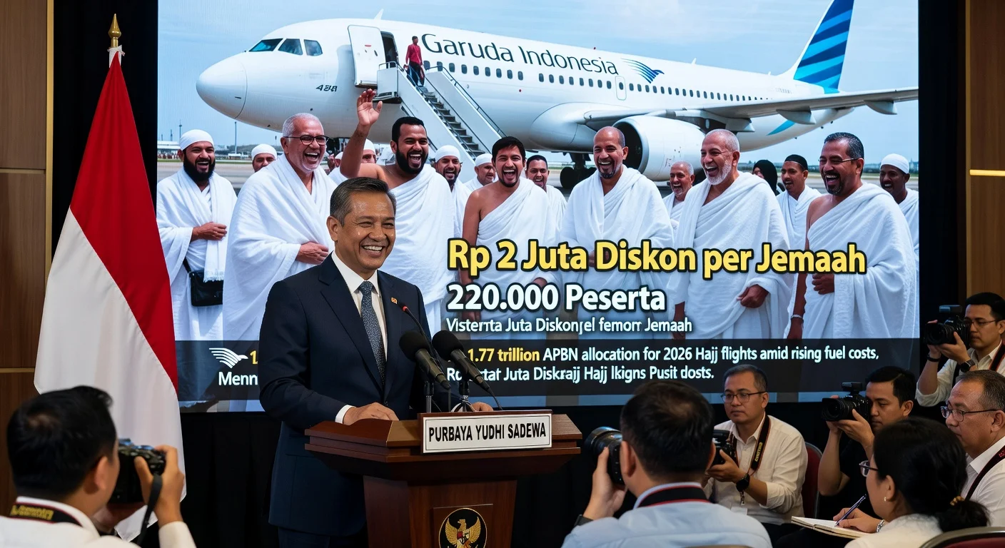 Indonesia's government has allocated an additional Rp 1.77 trillion from APBN reserves to cover 2026 Hajj flight costs amid rising avtur prices. This enables a Rp 2 million reduction in Hajj fees per pilgrim for around 220,000 participants. Finance Minister Purbaya Yudhi Sadewa said the funds come from prior-year budget efficiencies.