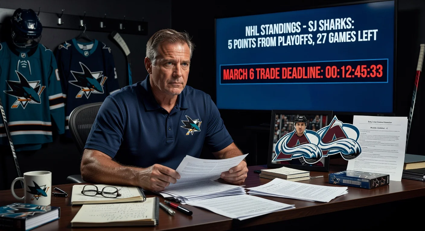 The San Jose Sharks, holding a 27-24-4 record and 58 points, are five points behind the Anaheim Ducks for the second wild card spot in the Western Conference and the Seattle Kraken for third in the Pacific Division as of late February 2026. With 27 games left, the Sharks face a pivotal decision at the March 6 trade deadline: buy, sell, or stand pat, according to general manager Mike Grier.