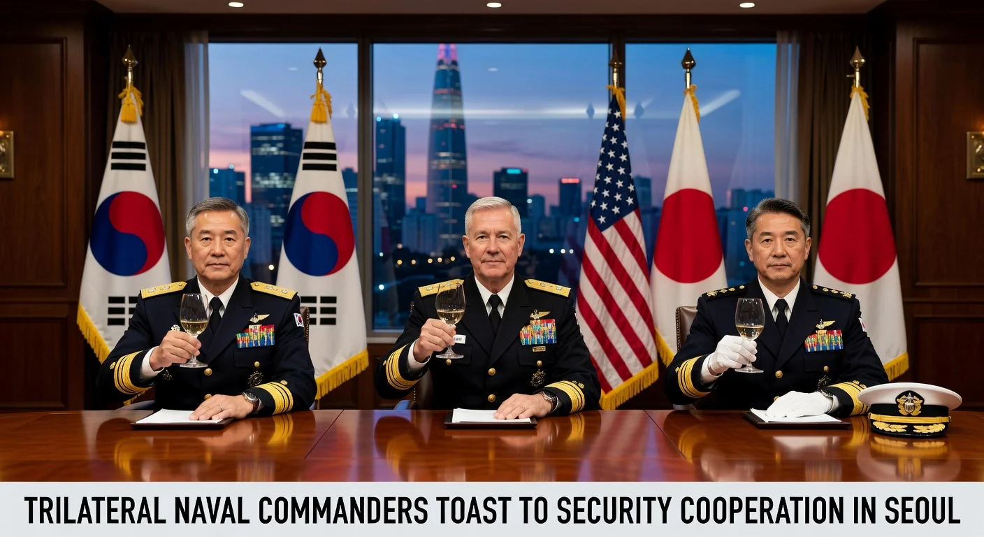 Top admirals of South Korea, US, and Japan toasting during trilateral maritime security talks in Seoul.