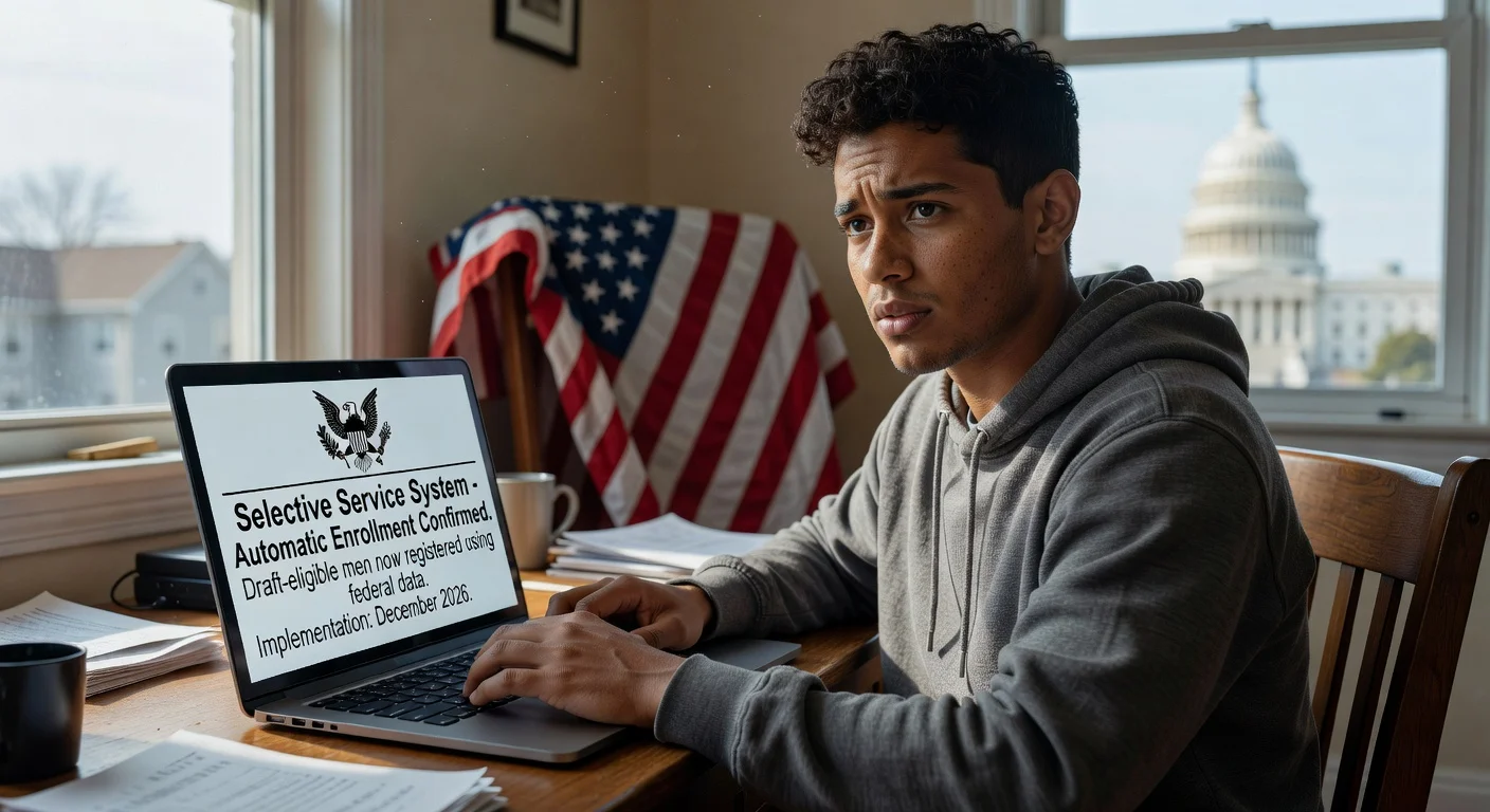 The Selective Service System has moved forward with plans to automatically enroll draft-eligible men using federal data, replacing the current requirement that most men register themselves around their 18th birthday. The change was mandated by the fiscal 2026 National Defense Authorization Act and is under federal regulatory review, with officials indicating implementation is targeted for December 2026.