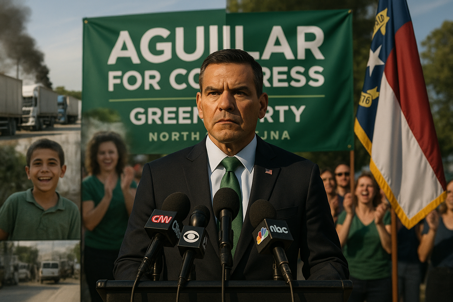 Anthony Aguilar, letnan kolonel Angkatan Darat AS pensiun dan Green Beret, mencalonkan diri untuk DPR AS di Distrik Kongres ke-13 North Carolina sebagai calon Partai Hijau, menurut catatan pemilu federal. Aguilar berusaha menggulingkan DPR Republik Brad Knott. Di situs kampanyenya dan komentar ke The Daily Wire, Aguilar memposisikan diri sebagai pelapor Gaza, berargumen Knott fokus pada politik partisan daripada kebutuhan keluarga pekerja. Kandidasi Aguilar mengikuti bulan-bulan perhatian atas akun publiknya tentang insiden di situs distribusi bantuan Gaza Humanitarian Foundation (GHF). Aguilar mengatakan ia bertemu bocah yang disebutnya “Amir” di situs GHF pada 28 Mei 2025, dan kemudian menyatakan bocah itu dibunuh oleh pasukan Israel tak lama setelah interaksi mereka. Dalam wawancara yang dikutip The Daily Wire, Aguilar menggambarkan mengatakan kepada anak itu, “Orang peduli. Kamu manusia dan orang peduli padamu,” dan bocah itu menciumnya serta berkata “Terima kasih” dalam bahasa Inggris. Dalam penampilan 31 Juli 2025 di acara Tucker Carlson, Aguilar berkata, “Saya melihat wajah putra saya saat melihatnya,” dan menambahkan, “Saya tidak mendengarnya dari orang kedua... Saya melihatnya. Saya menyentuhnya. Saya merasakannya,” sambil menyalahkan kematian bocah itu pada Pasukan Pertahanan Israel. The Daily Wire melaporkan bahwa video kamera tubuh dari kontraktor lain di situs tidak cocok dengan deskripsi Aguilar. Rekaman, seperti yang dijelaskan outlet, menunjukkan bocah mencium tangan kontraktor lain dan kemudian hanya bertukar singkat dengan Aguilar. Kontraktor yang dikutip The Daily Wire menyebut akun Aguilar “palsu,” mengatakan tidak ada “dialog Inggris mendalam” dan bocah tidak “melepas bantuannya untuk mencium Tony dan berkata ‘terima kasih’ padanya dalam bahasa Inggris.” GHF kemudian secara publik mengidentifikasi bocah yang disebut Aguilar “Amir” sebagai Abdul Rahim “Abood” Muhammad Hamden dan mengatakan ia hidup dan dipindahkan bersama keluarganya ke lokasi aman yang tidak diungkap. Dalam pernyataan 4 September 2025, organisasi itu mengatakan bukti video menunjukkan interaksi Aguilar dengan anak itu singkat dan bocah pulang tanpa cedera. Aguilar terus memperluas klaimnya setelah muncul pertanyaan. The Daily Wire melaporkan bahwa dalam wawancara YouTube yang diterbitkan 23 Agustus 2025, Aguilar mengatakan bocah berlari ke “tembok peluru” dan menderita “tembakan ke torso, tembakan ke kaki.” The Daily Wire juga melaporkan bahwa NBC News menghapus pelaporan sebelumnya tentang klaim Aguilar dan menayangkan koreksi di udara, sementara Carlson belum membahas ulang cerita Aguilar secara publik hingga laporan outlet 9 Februari 2026. Secara terpisah, GHF mengatakan kontrak Aguilar dengan UG Solutions, kontraktor keamanan yang bekerja dengan organisasi itu, berakhir pada 13 Juni 2025, dan ia dipecat karena masalah kinerja dan perilaku—akun yang disengketakan Aguilar, mengatakan ia mengundurkan diri. Dalam pengarahan September 2025 tentang apa yang disebutnya masalah personel, GHF mengutip pesan yang dikatakannya Aguilar kirim setelah pemecatannya, termasuk satu di mana ia menulis, “Saya bisa jadi sahabat terbaikmu, atau mimpi buruk terburukmu. Berhenti bermain-main, kembalikan saya bekerja...” Pada awal September 2025, Aguilar dikeluarkan dari sidang Komite Hubungan Luar Negeri Senat setelah berteriak bahwa Amerika Serikat “terlibat dalam genosida,” menurut video dan akun yang dikutip The Daily Wire. Outlet itu melaporkan bahwa ketua komite, Sen. Jim Risch dari Idaho, menjawab, “Ke penjara.” Materi kampanye Aguilar dan kelompok luar juga menyoroti penerimaannya Penghargaan Sam Adams Associates for Integrity. Situs web organisasi mengatakan Aguilar menerima penghargaan di Raleigh, North Carolina, pada Januari 2026. Dalam komentar ke The Daily Wire, Aguilar mengatakan ia mencalonkan diri untuk menawarkan pilihan pihak ketiga dan menunjuk polling yang dikatakannya menunjukkan “62% orang Amerika” ingin pilihan di luar dua partai besar. Ia mengatakan platformnya mencakup perawatan kesehatan sebagai hak asasi manusia dan menentang “perang tanpa akhir.”