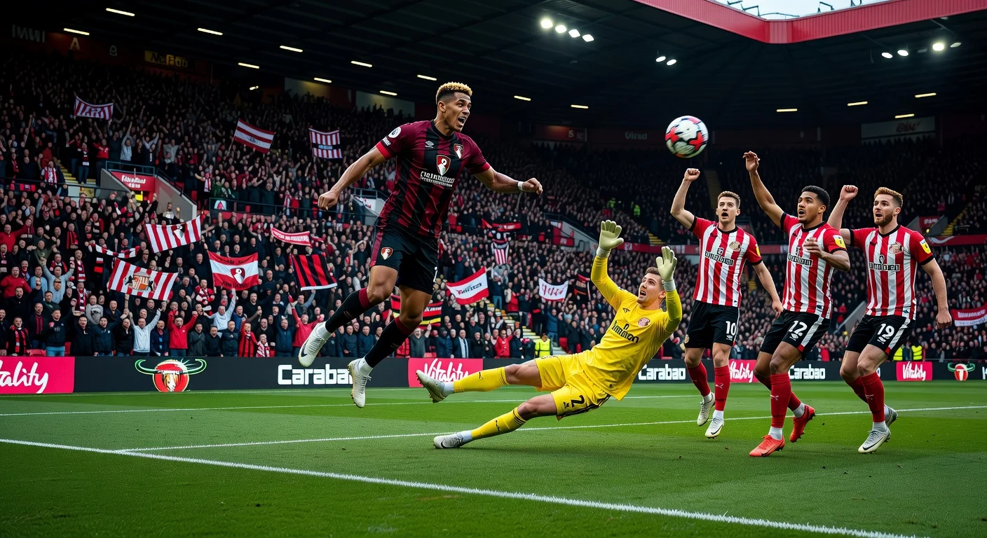 Bournemouth dan Sunderland bermain imbang 1-1 yang menghibur di Premier League di Vitality Stadium. Eliezer Mayenda membawa Sunderland unggul di babak pertama, tapi Evanilson menyamakan kedudukan dengan sundulan setelah menit ke-60. Kedua tim punya peluang menang tapi puas dengan satu poin masing-masing.