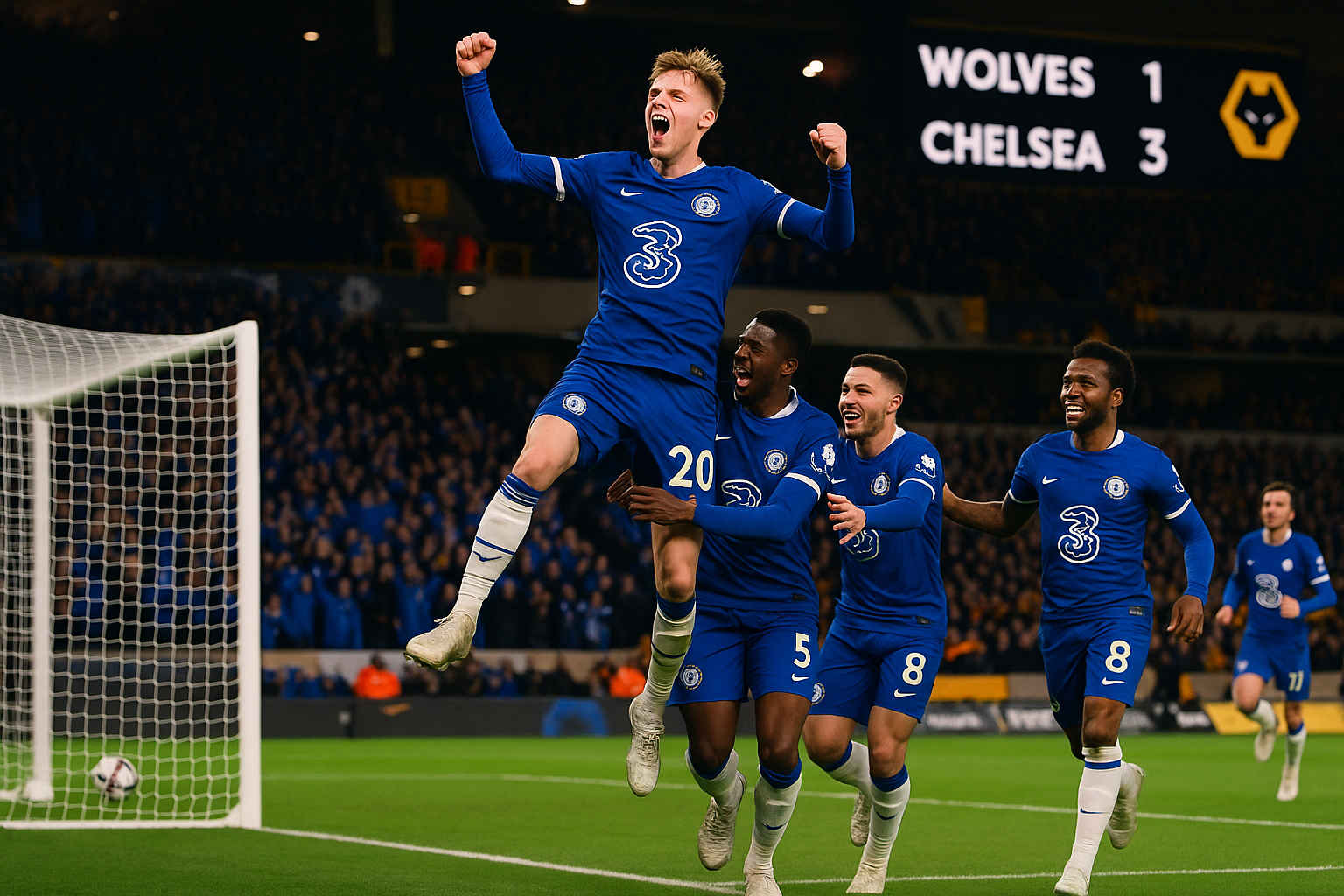 Cole Palmer mencetak hat-trick babak pertama saat Chelsea meraih kemenangan 3-1 atas Wolves yang berada di dasar klasemen di Molineux. Kemenangan ini menandai keberhasilan keempat berturut-turut Liam Rosenior di Premier League sejak mengambil alih. Gol-gol Palmer membantu Chelsea mempertahankan perjuangan kualifikasi Liga Champions.