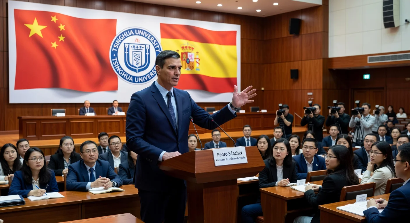 Spanish PM Pedro Sánchez speaks at Tsinghua University in Beijing, urging accurate understanding of China and stronger Europe-China ties.