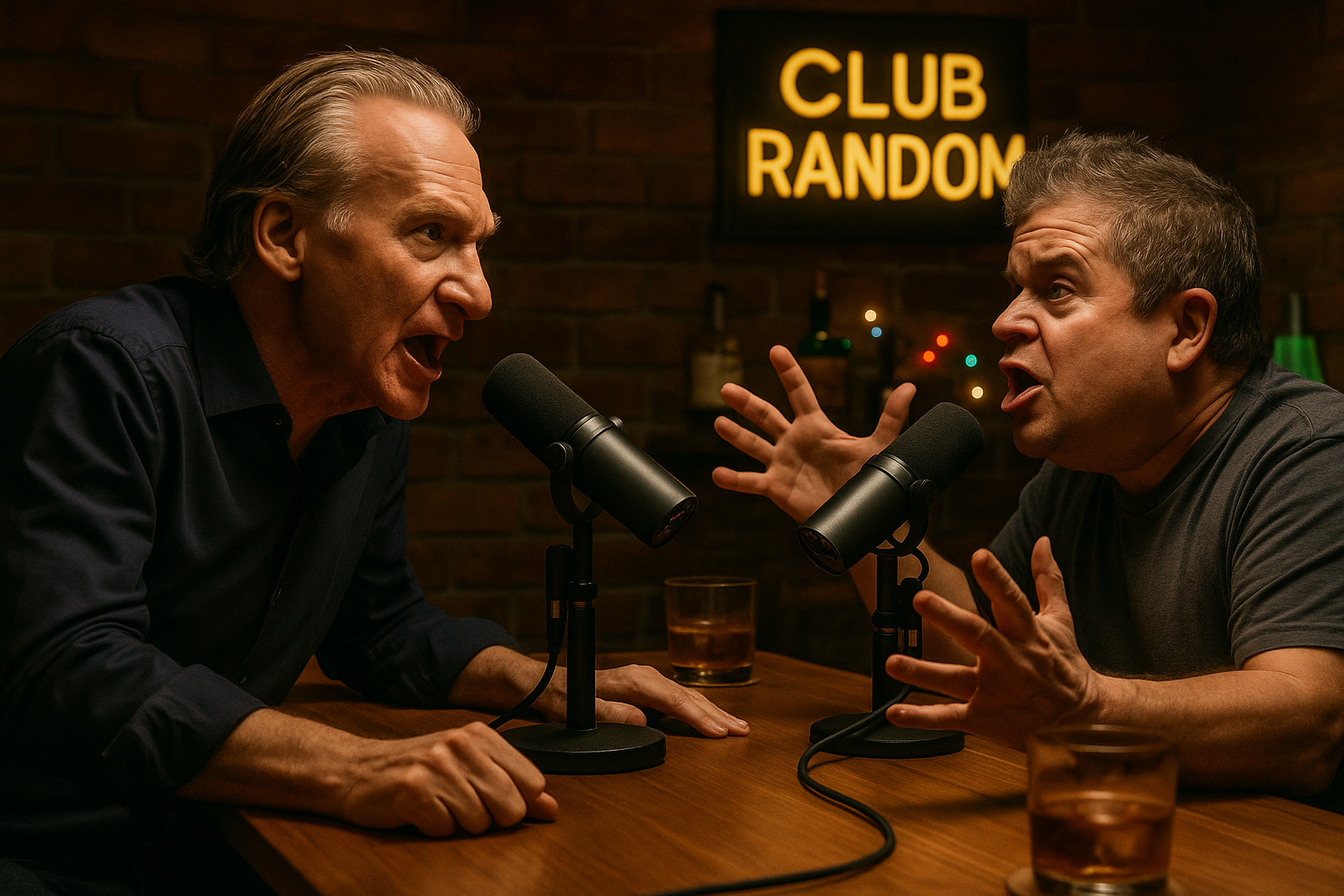 Bill Maher and Patton Oswalt sparring on Club Random podcast about left-wing politics.