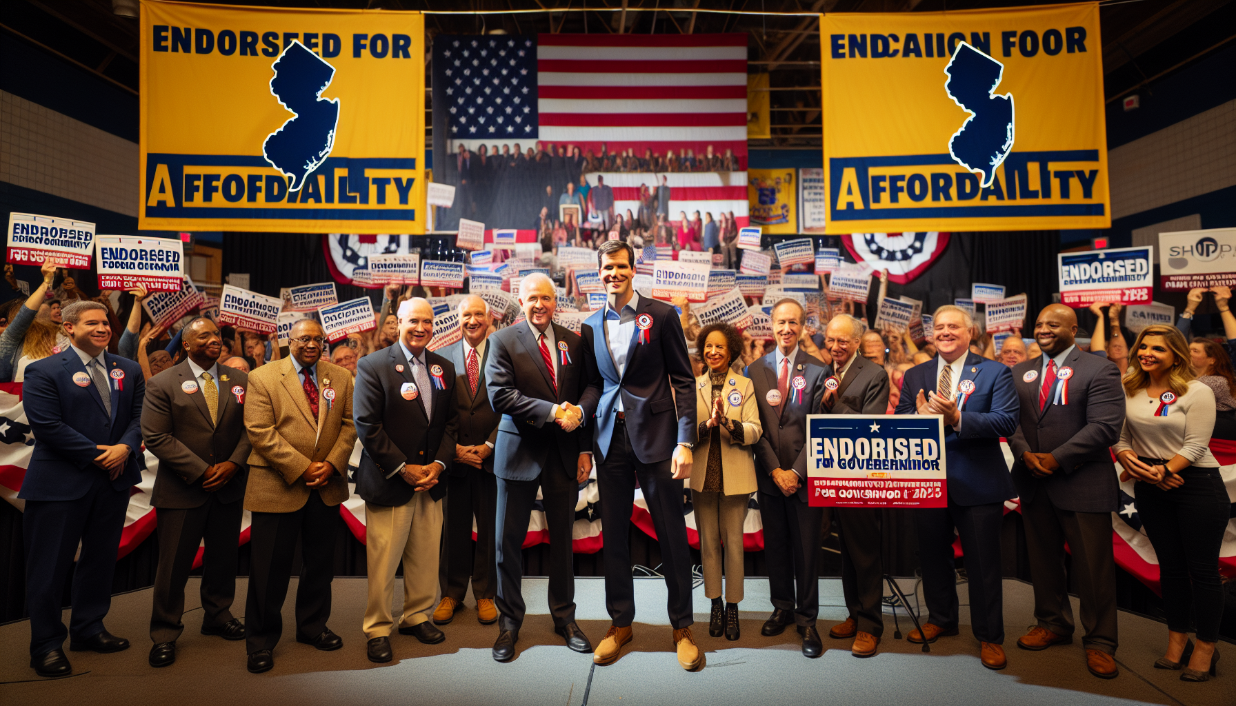 Republican candidate Jack Ciattarelli receives endorsements from Democratic officials at a New Jersey campaign event, symbolizing cross-party support in the 2025 governor's race.