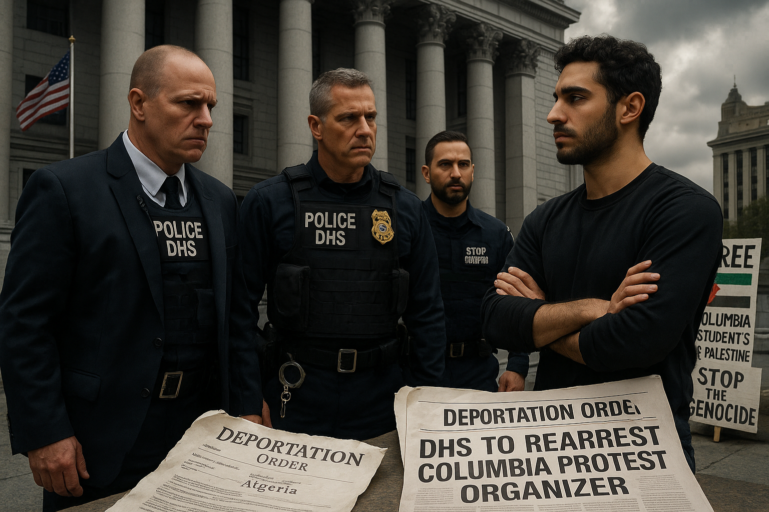 The Department of Homeland Security says it is preparing to rearrest Mahmoud Khalil, a U.S. lawful permanent resident who helped organize pro-Palestinian demonstrations linked to Columbia University, and move forward with deportation proceedings that could send him to Algeria. The announcement came after a federal appeals court said a New Jersey judge lacked jurisdiction over an order that had led to his release from immigration detention.