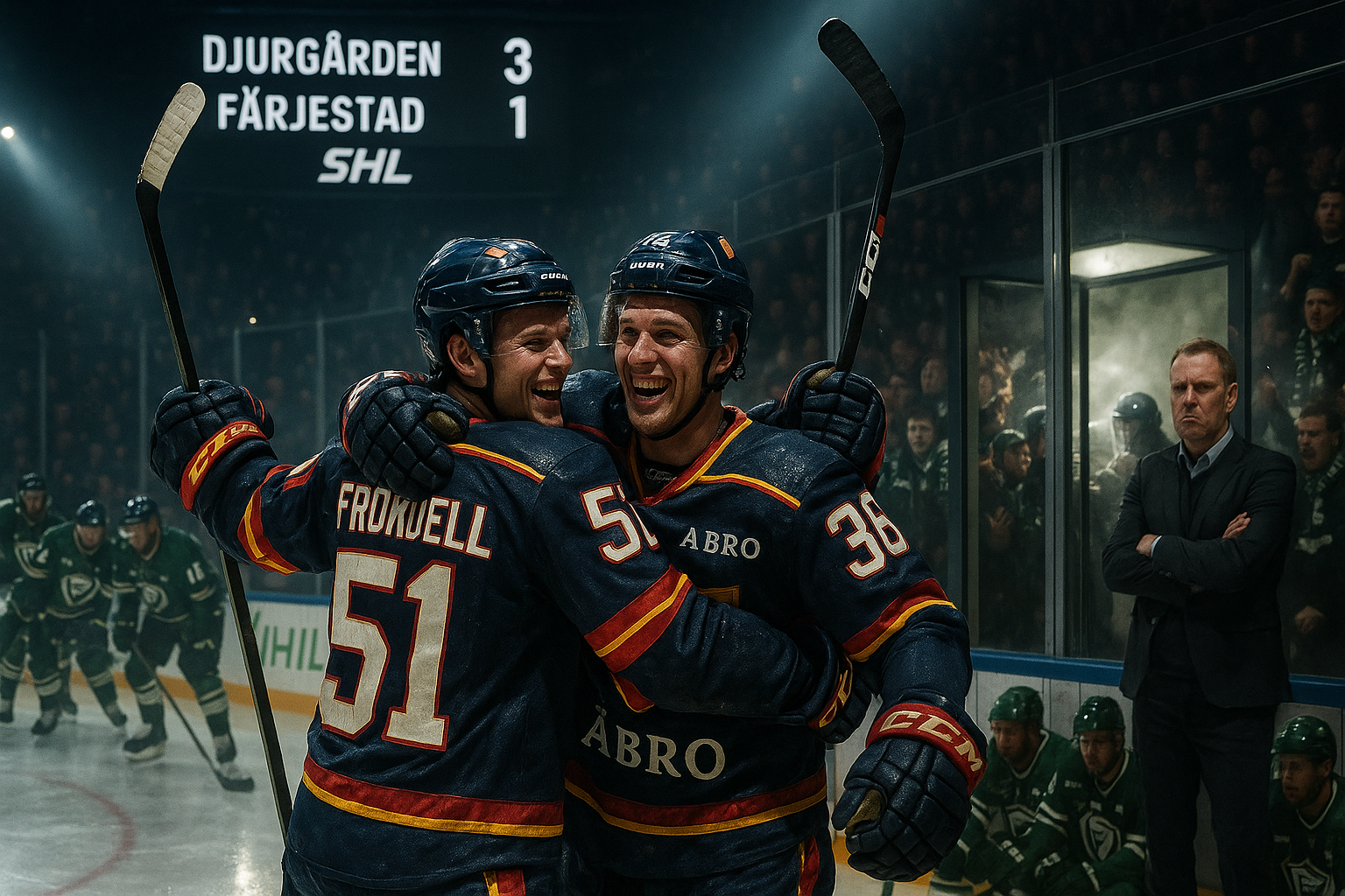 The SHL matchup at Löfbergs Arena saw Djurgården take an early lead in the first period when Marcus Krüger scored at 13:17, assisted by Anton Frondell and Philip Holm. The second period remained scoreless, keeping the tension high. In the third, Färjestad equalized at 50:09 through Joakim Nygård, assisted by Filip Roos, but Djurgården quickly responded. Frondell netted the go-ahead goal at 53:44 with assists from Eklund and Jacob Josefson, and David Blomgren sealed the 3-1 win at 59:23, assisted by Gustav Lindström.