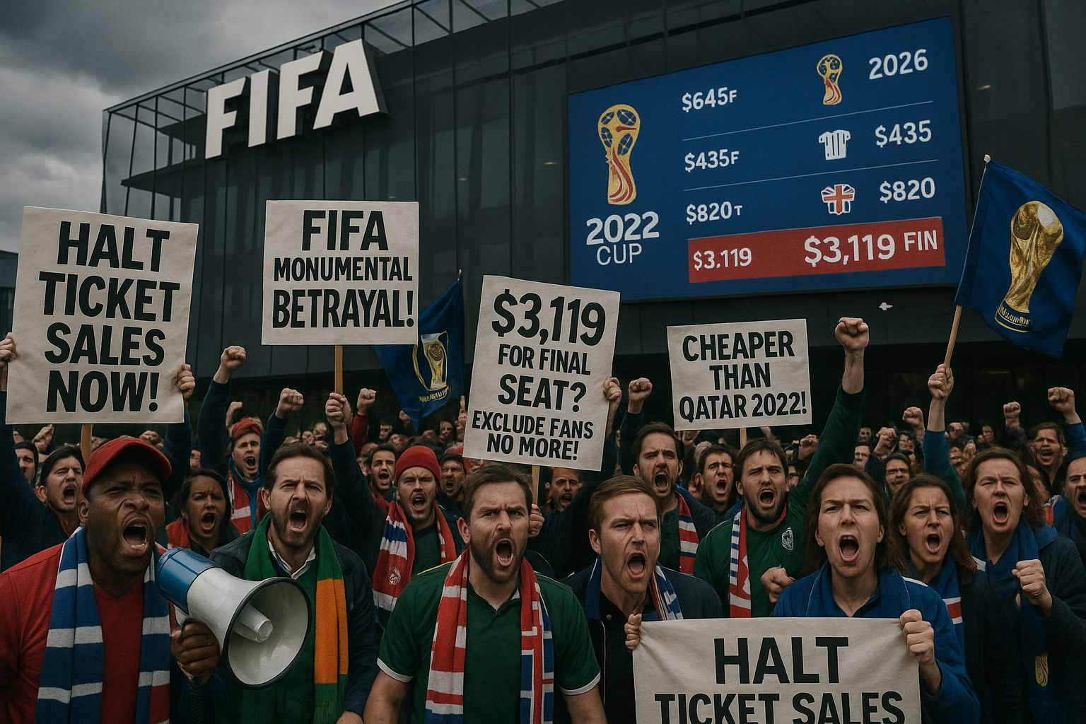 Football Supporters Europe ha accusato la FIFA di un 'tradimento monumentale' dopo aver rivelato i prezzi dei biglietti per i Mondiali 2026, con il posto finale più economico a £3.119. Il gruppo chiede una pausa immediata nelle vendite attraverso le associazioni nazionali, citando costi estorsivi che escludono i tifosi devoti. I prezzi hanno scatenato critiche diffuse, di gran lunga superiori a quelli del torneo 2022 in Qatar.