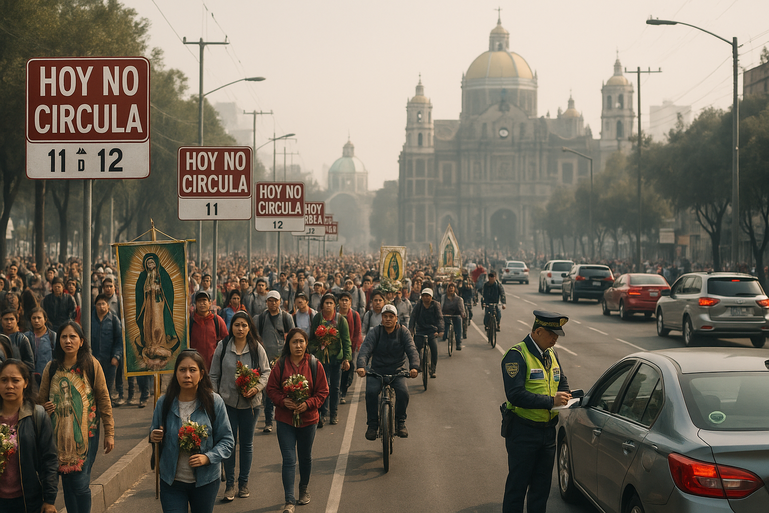 I pellegrinaggi per celebrare la Vergine di Guadalupe sono iniziati ad arrivare nella Città del Messico l'11 dicembre 2025, giorno in cui il programma Hoy No Circula si applica ai veicoli con adesivi verdi e targhe terminanti in 1 e 2, nonché ologrammi di verifica 1 e 2. Questa restrizione, dalle 5:00 alle 22:00, mira a ridurre l'inquinamento nella Zona Metropolitana della Città del Messico, che copre tutti i 16 borough di CDMX e 18 municipalità conurbate dello Stato del Messico, come Atizapán de Zaragoza, Coacalco de Berriozábal, Cuautitlán, Cuautitlán Izcalli, Chalco, Chicoloapan, Chimalhuacán, Ecatepec de Morelos, Huixquilucan, Ixtapaluca, La Paz, Naucalpan de Juárez, Nezahualcóyotl, Nicolás Romero, Tecámac, Tlalnepantla de Baz, Tultitlán e Valle de Chalco.