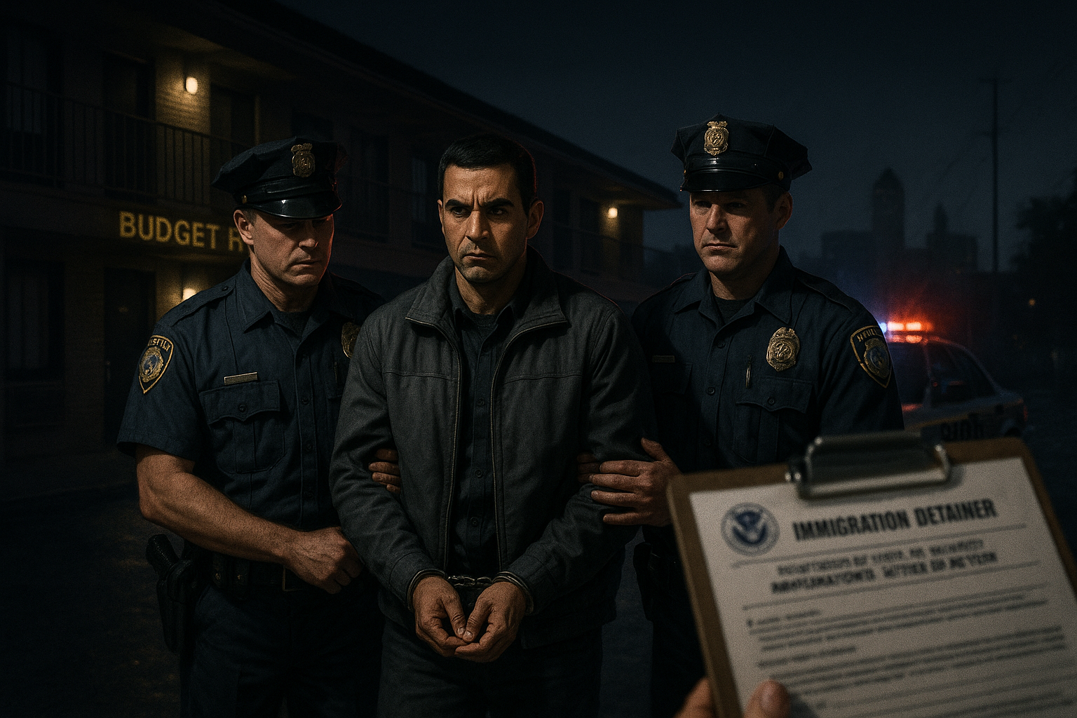 Illustration of Egyptian suspect arrested in Louisville hotel, facing ICE detainer for Nashville aggravated rape charges.