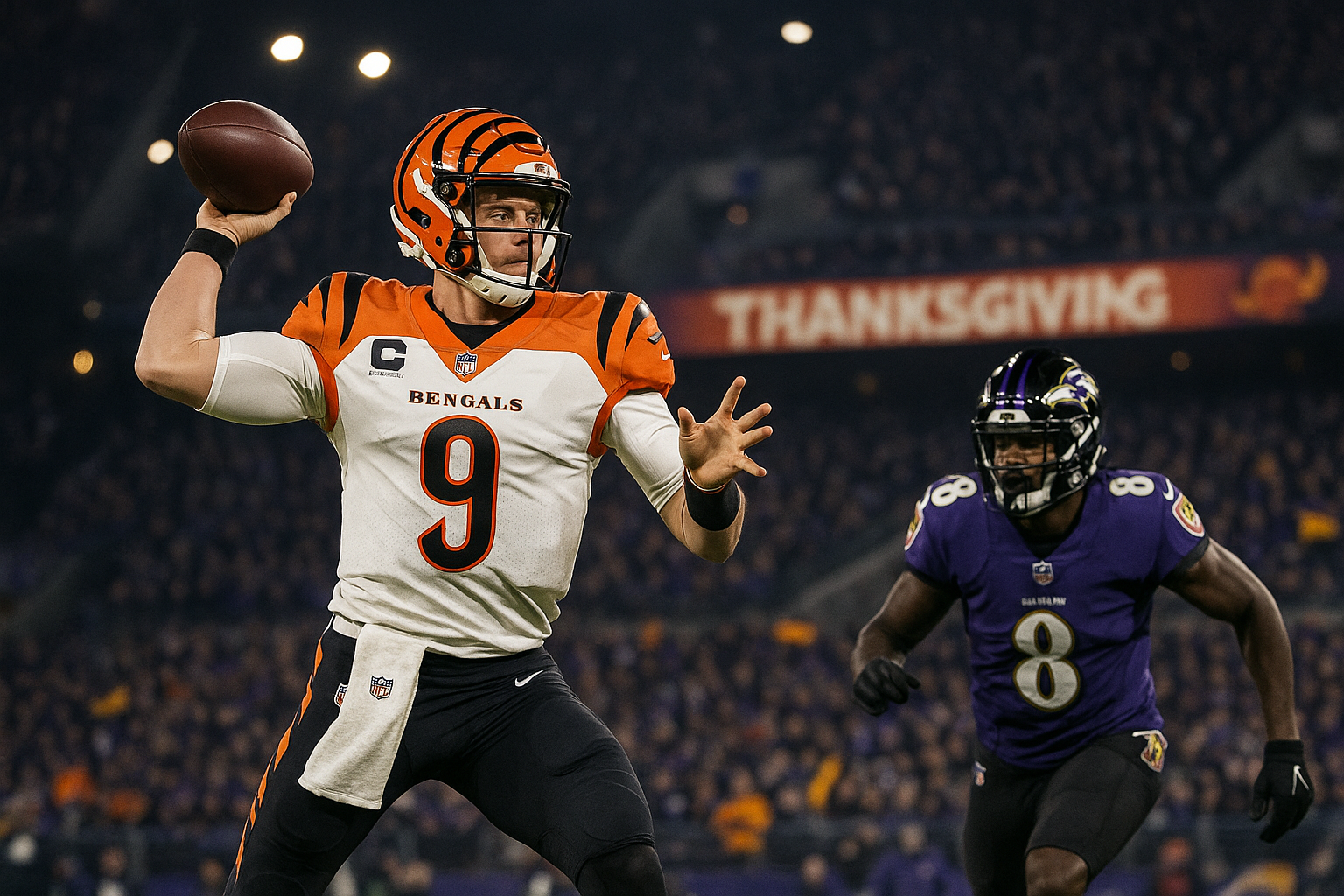 Joe Burrow returns from injury for Bengals vs. Ravens Thanksgiving NFL clash at M&T Bank Stadium.