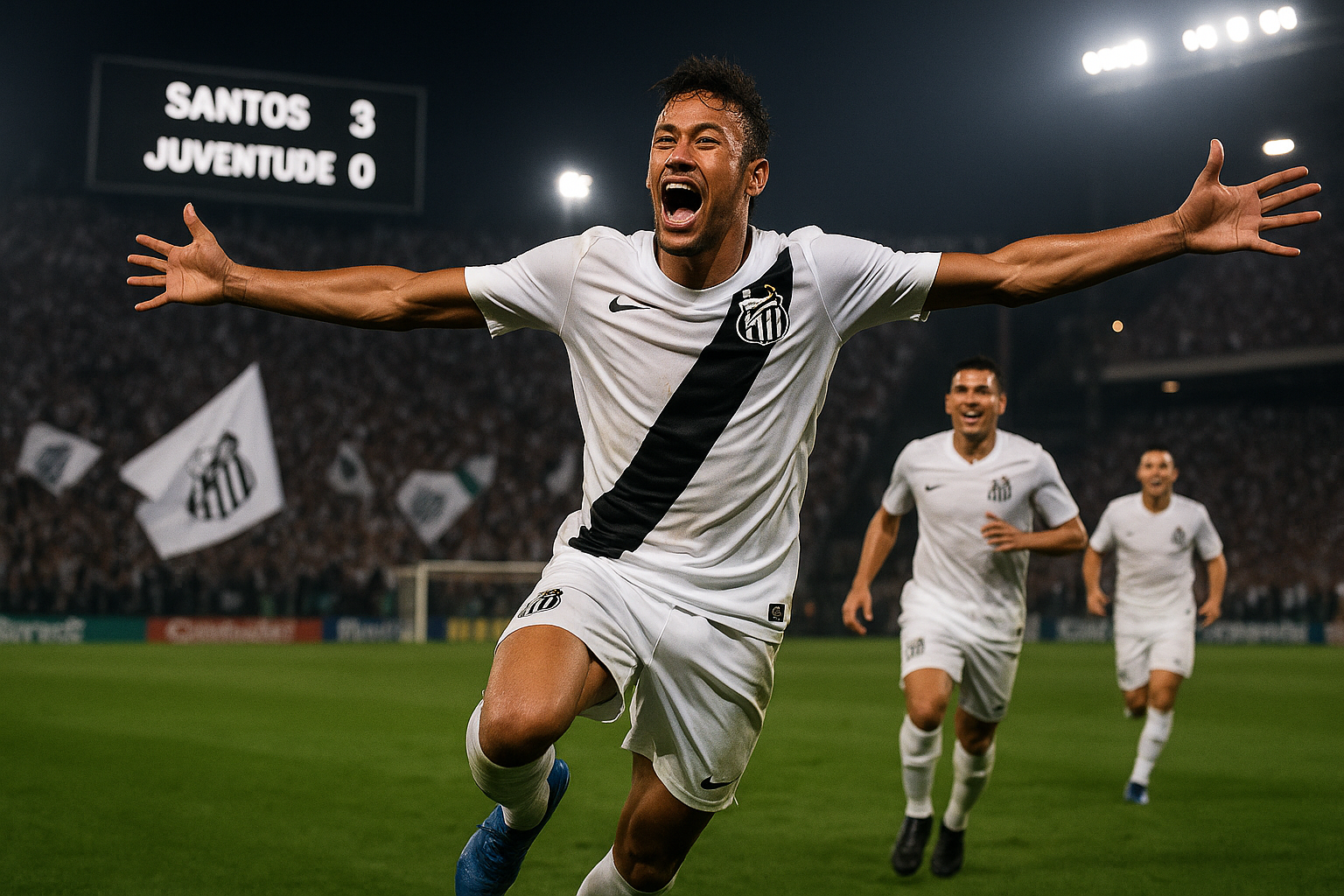 La partita si è disputata mercoledì sera, il 3 dicembre 2025, allo Estádio Alfredo Jaconi di Caxias do Sul, per la 37ª giornata del Campionato brasiliano. Il Santos ha affrontato il Juventude per conquistare punti ed evitare la zona retrocessione, e Neymar è stato la stella. Il primo tempo è stato equilibrato, con occasioni per entrambe le squadre: il Santos ha pressingato con i passaggi di Neymar e un paro di Jandrei su un tiro di Guilherme, mentre il Juventude ha avuto tentativi di Taliari e Souza, più un gol annullato per fuorigioco.